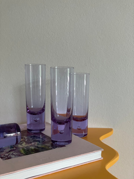 4 Høje lilla glas med bobbel i fod