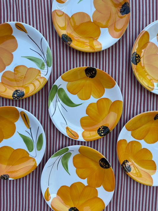 Italienske frokosttallerkener med gule blomster