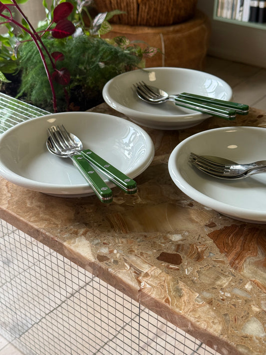 Sæt af 7 (8) dybe tallerkener med guldkant og blomster