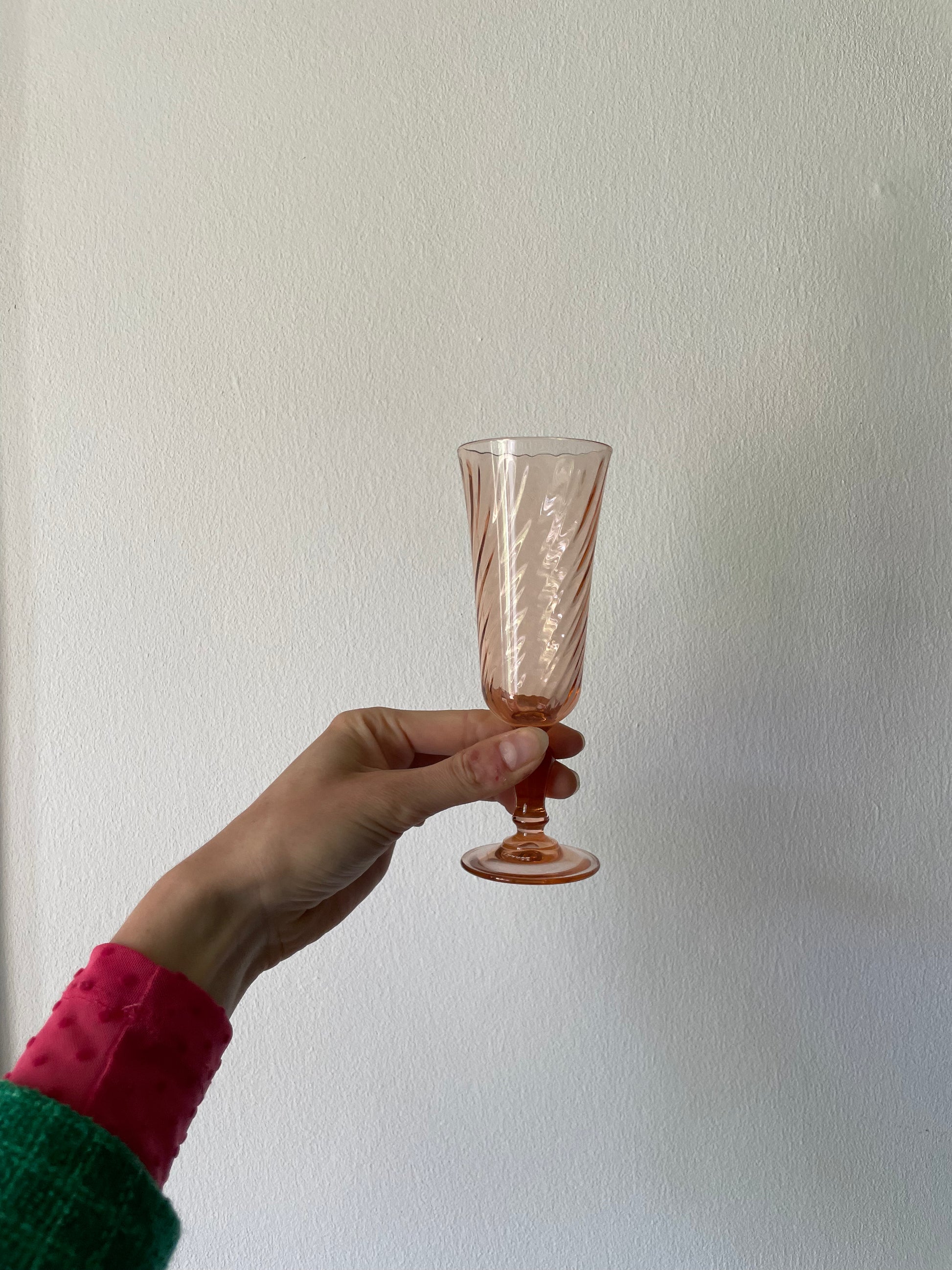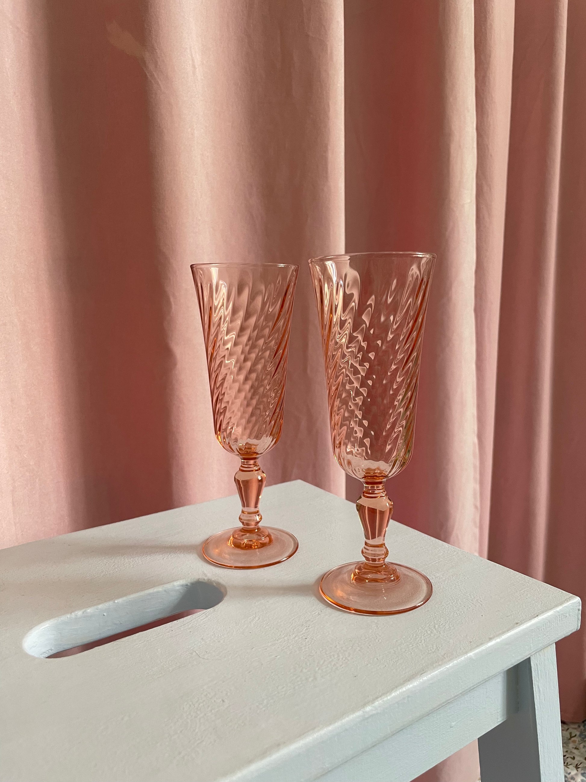 Lækre franske champagne fløjter i Rosa swirl. Glassene er 16,5cm høje og rummer lige 1,5dl.