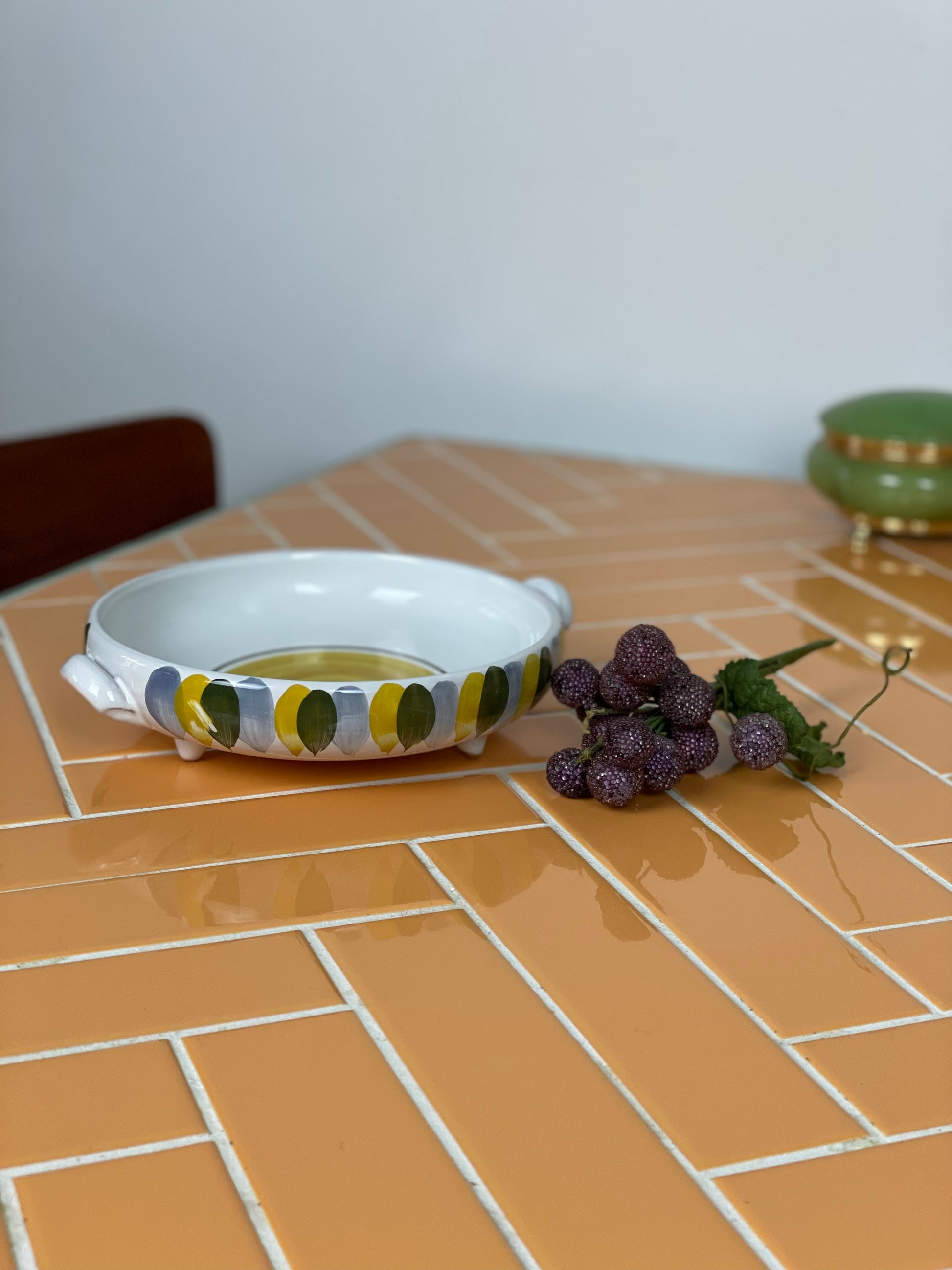 Smuk lille skål fra Bangholm Keramik med håndtag. Den er i rigtig fin stand og måler 18cm i diameter eksklusiv håndtag og 5cm i højden.