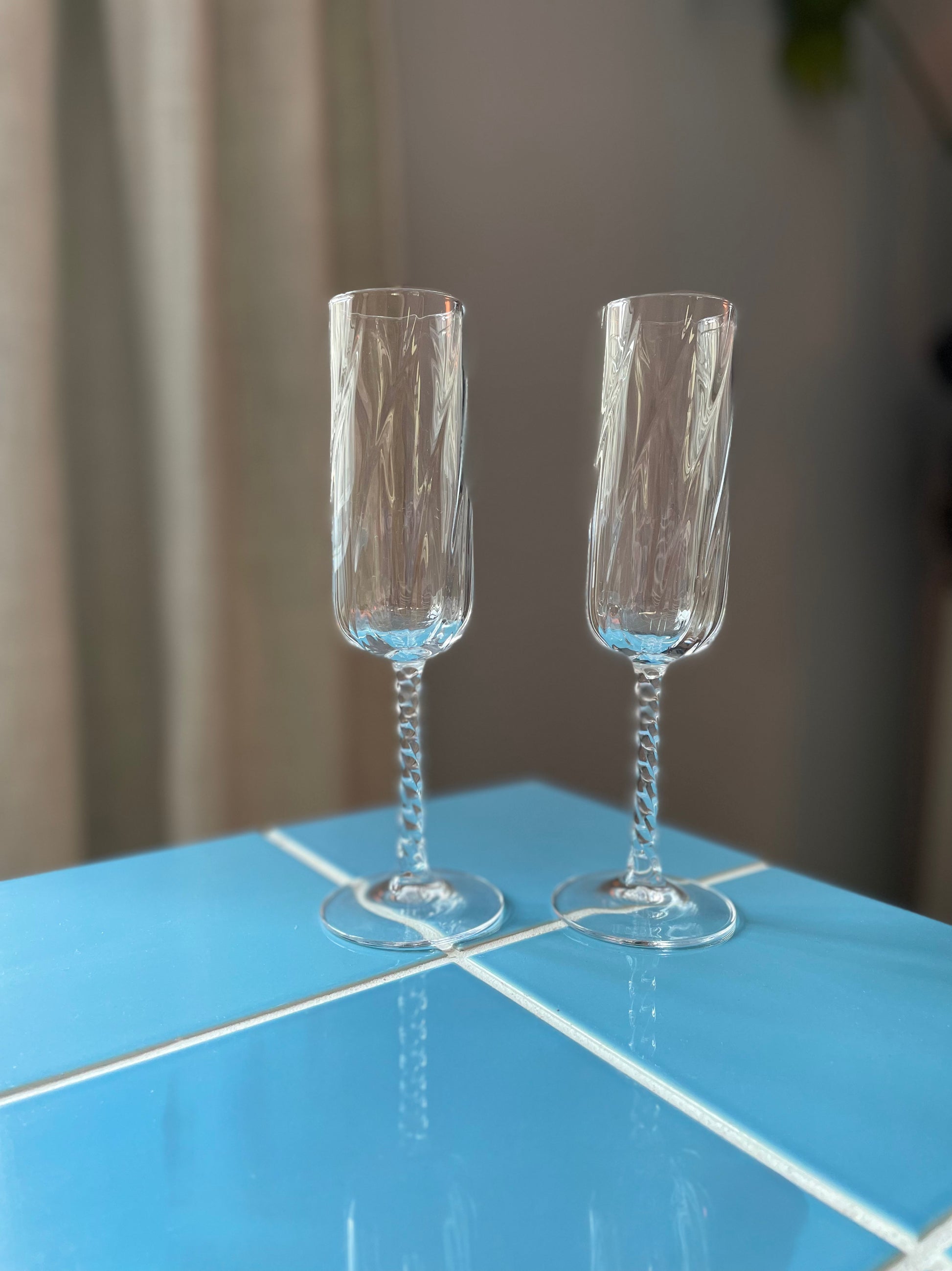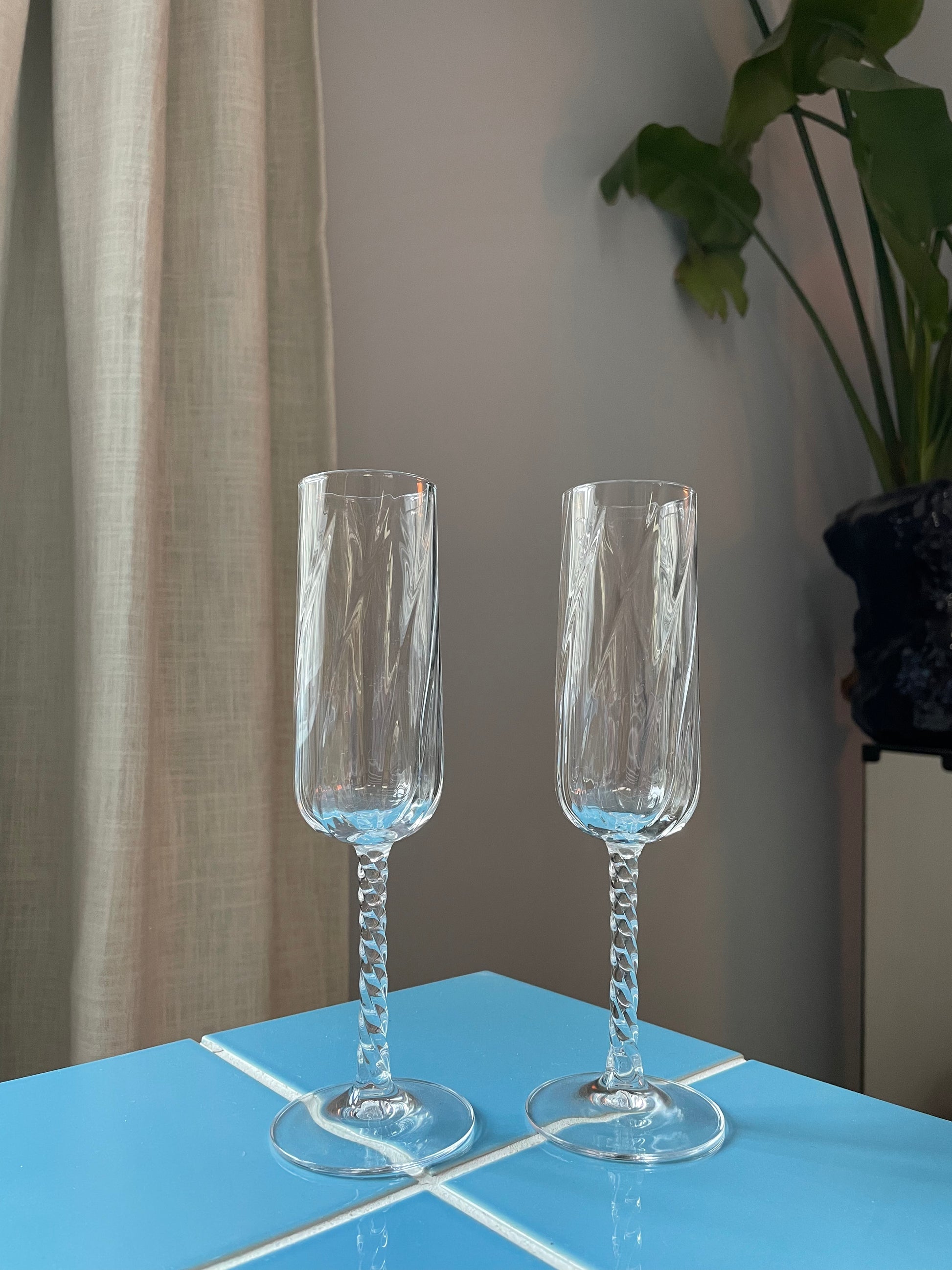 Champagnefløjter på 21cm i krystalglas. Glassene måler 1,25dl.