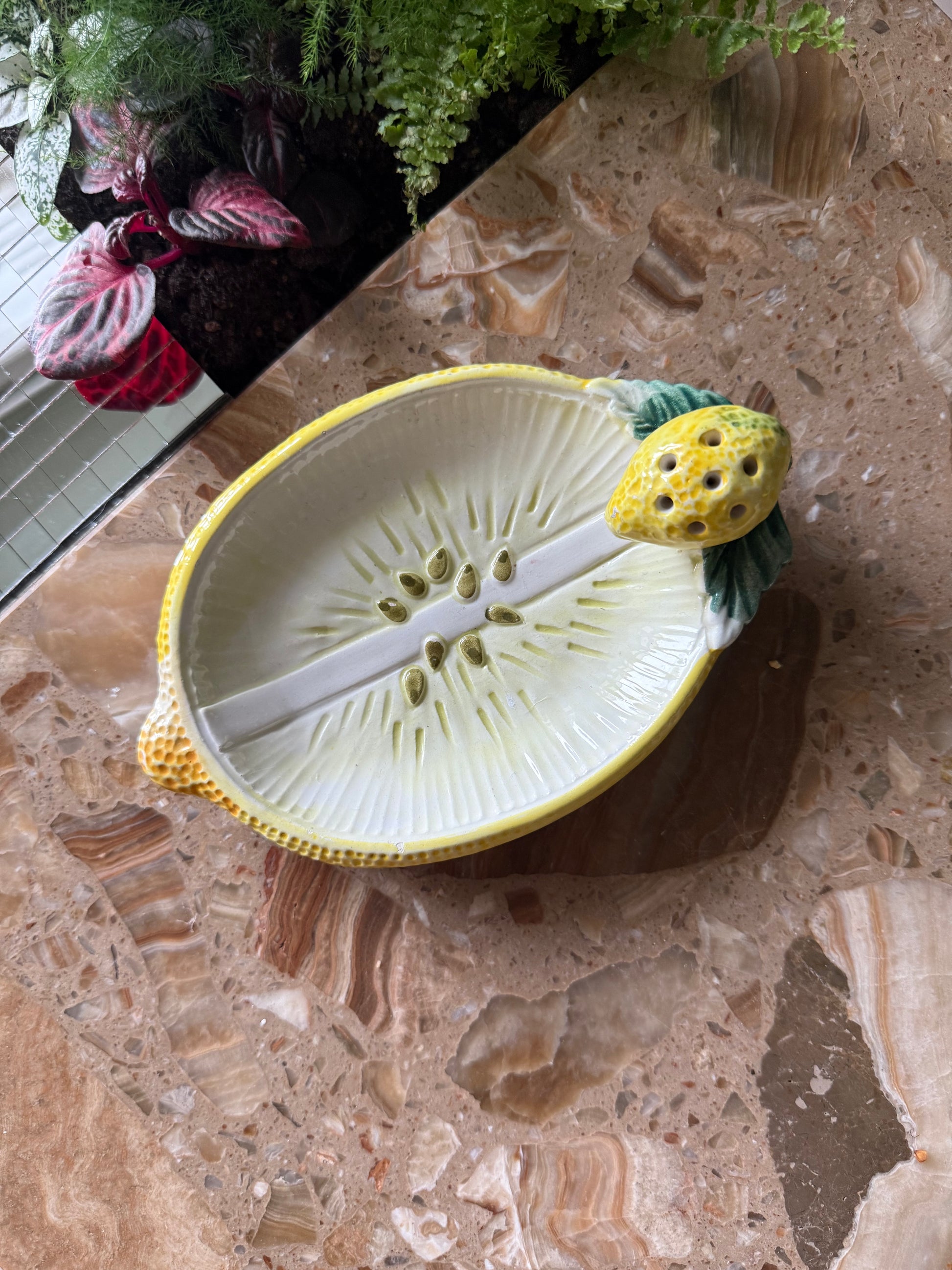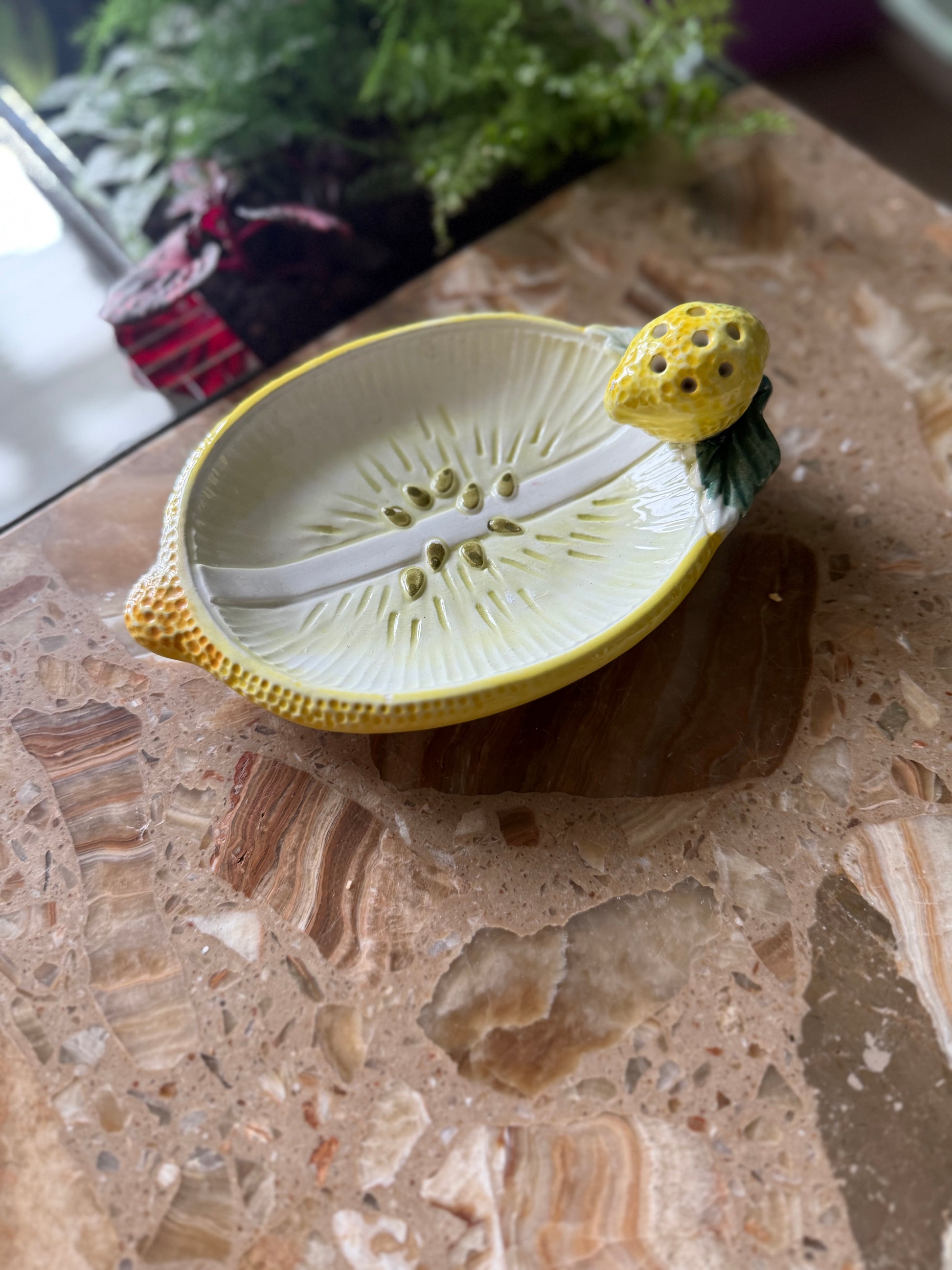 Det perfekte citronfad til en snack. Servér fx oliven eller ostecubes og placér tandstikker i citronen. Fadet måler 17cm i længden.