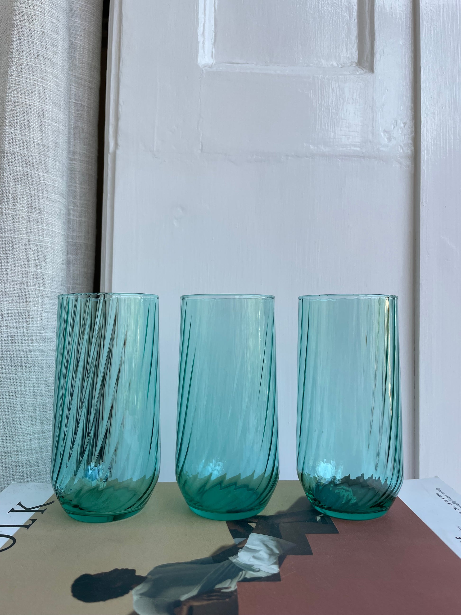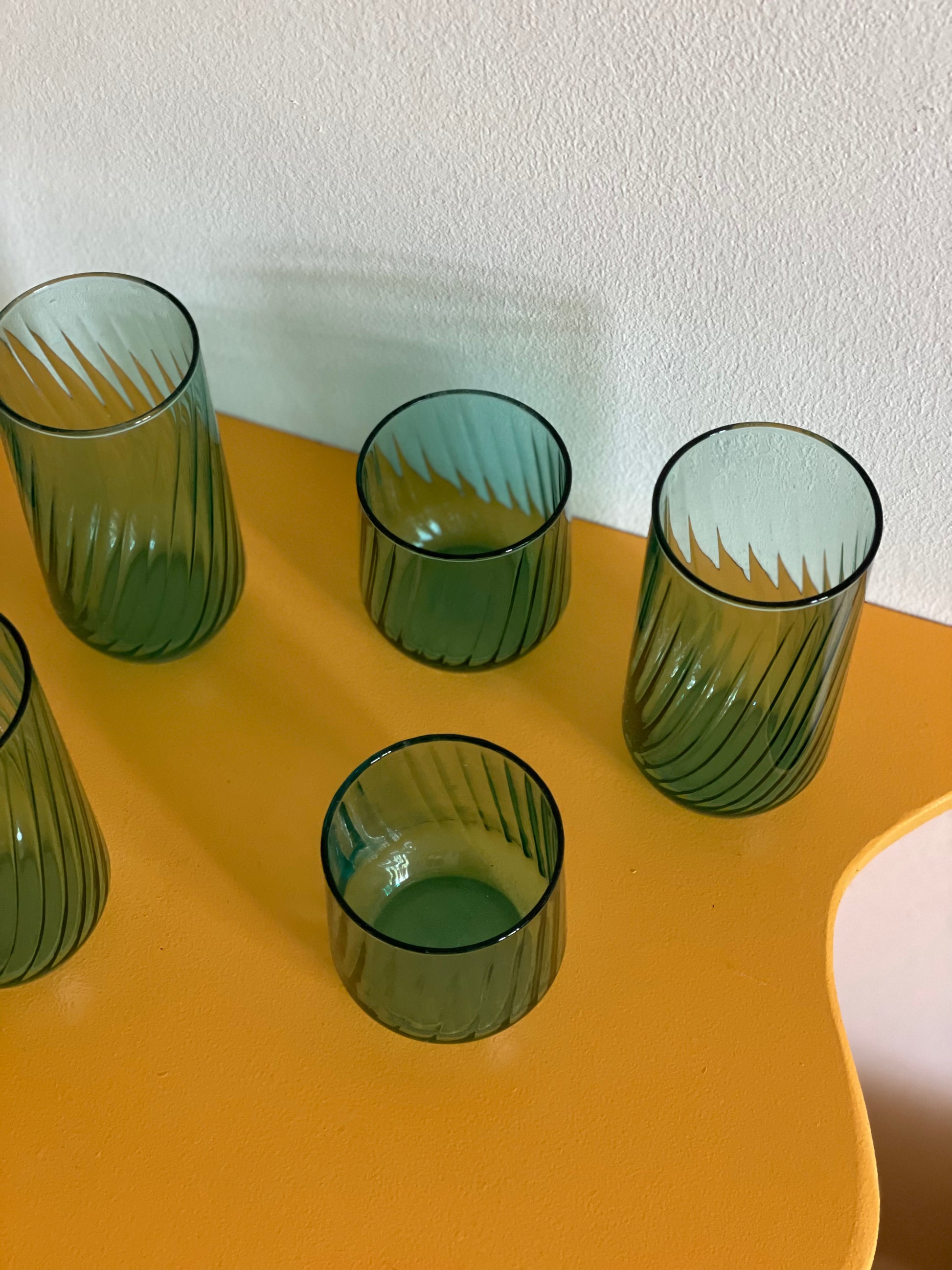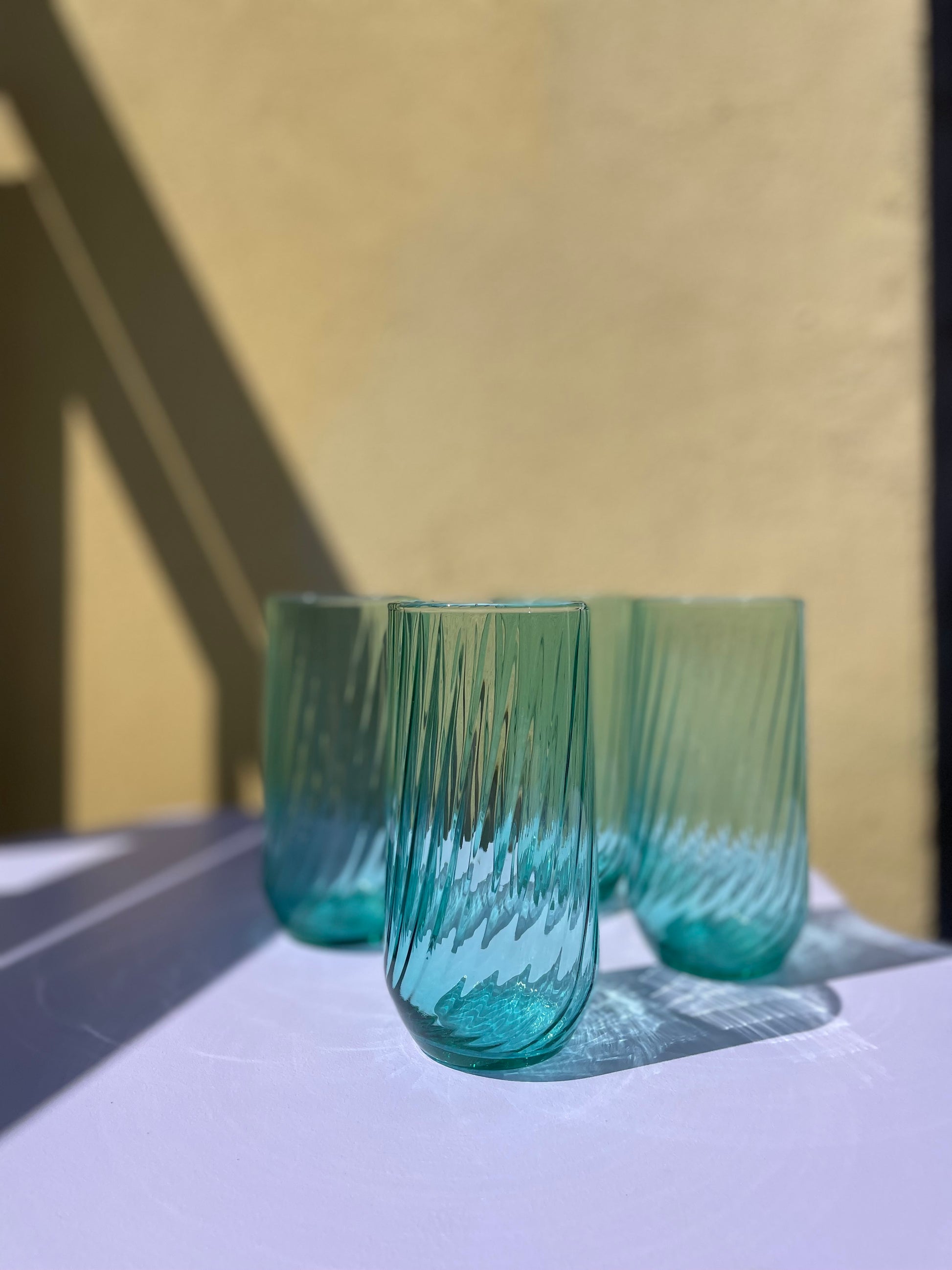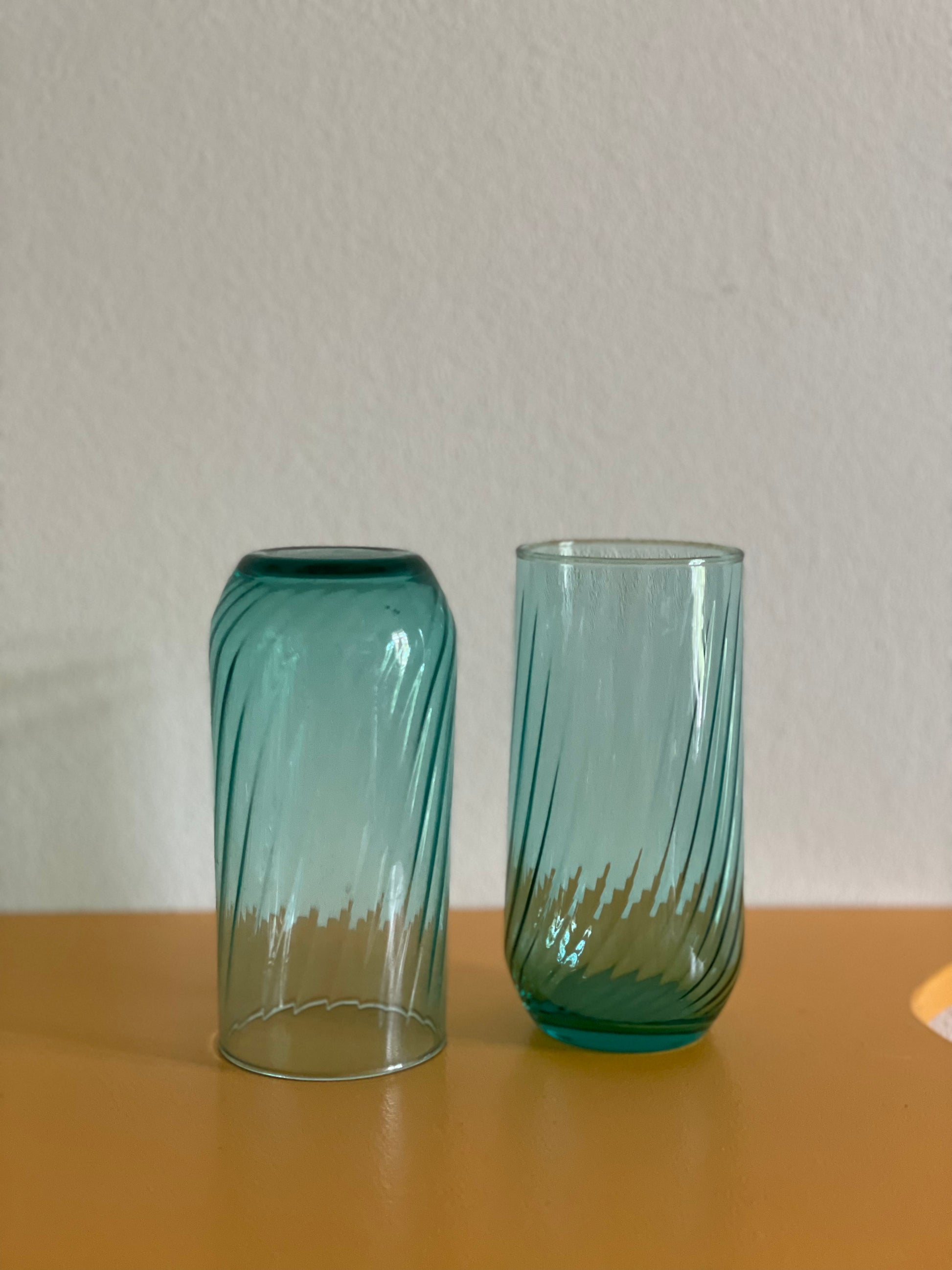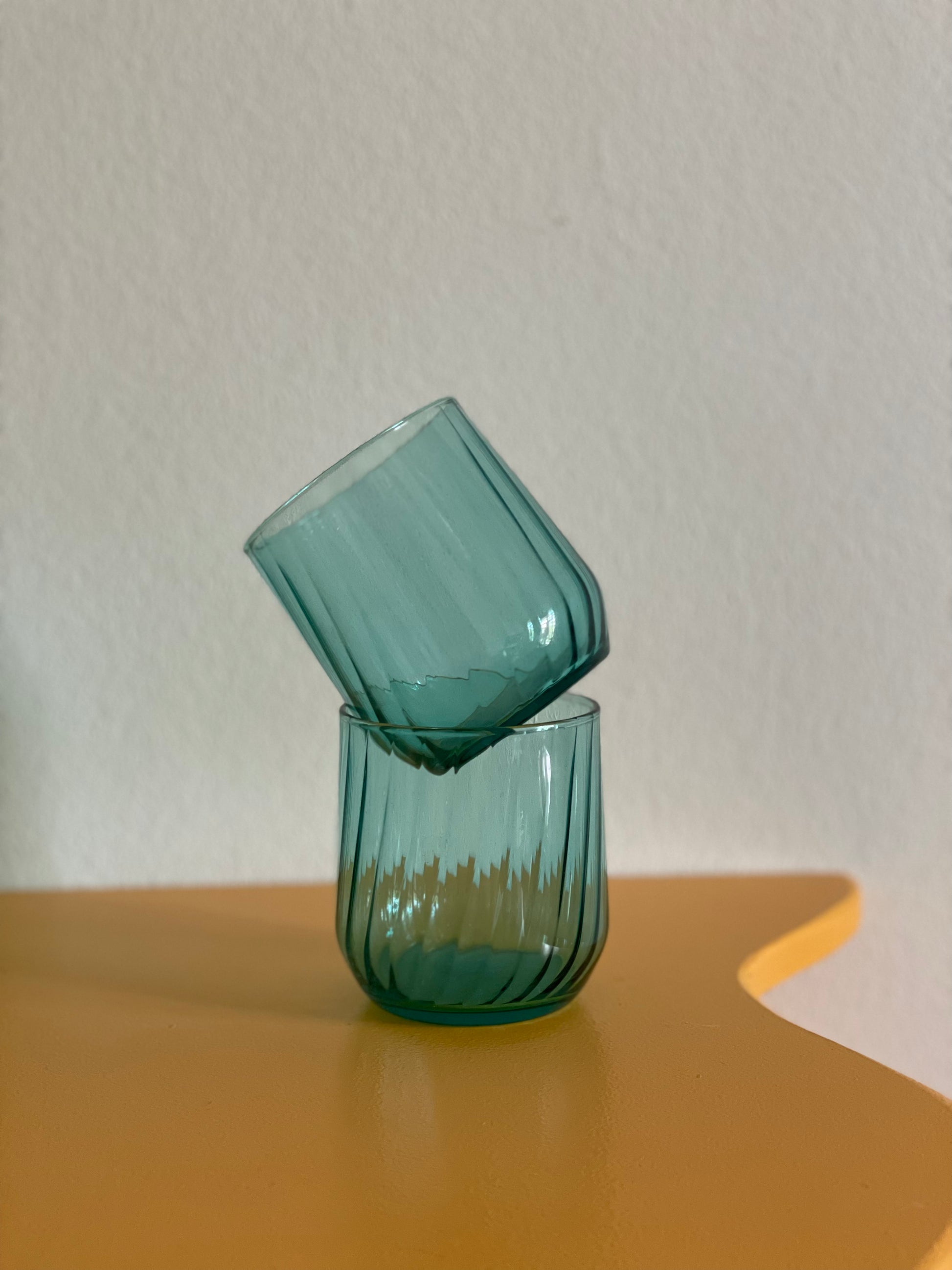 Yndefulde turkisgrønne vandglas med let swirl.