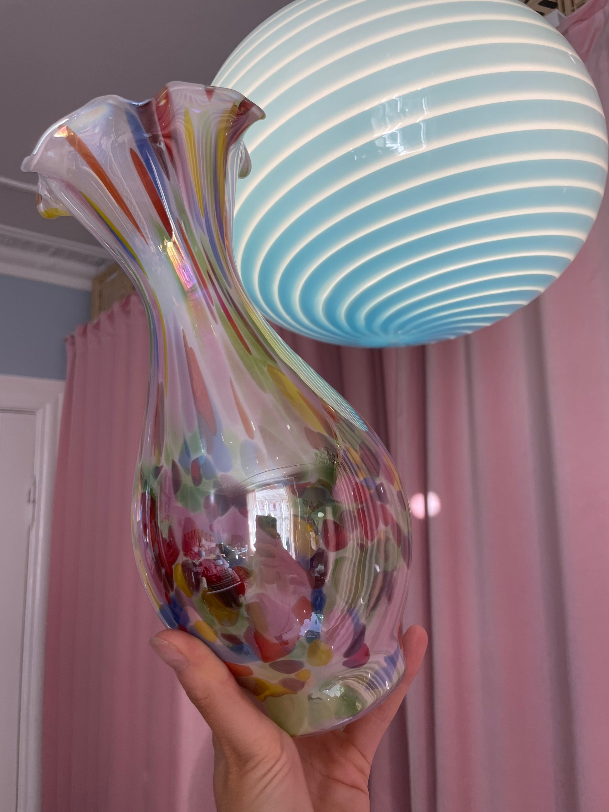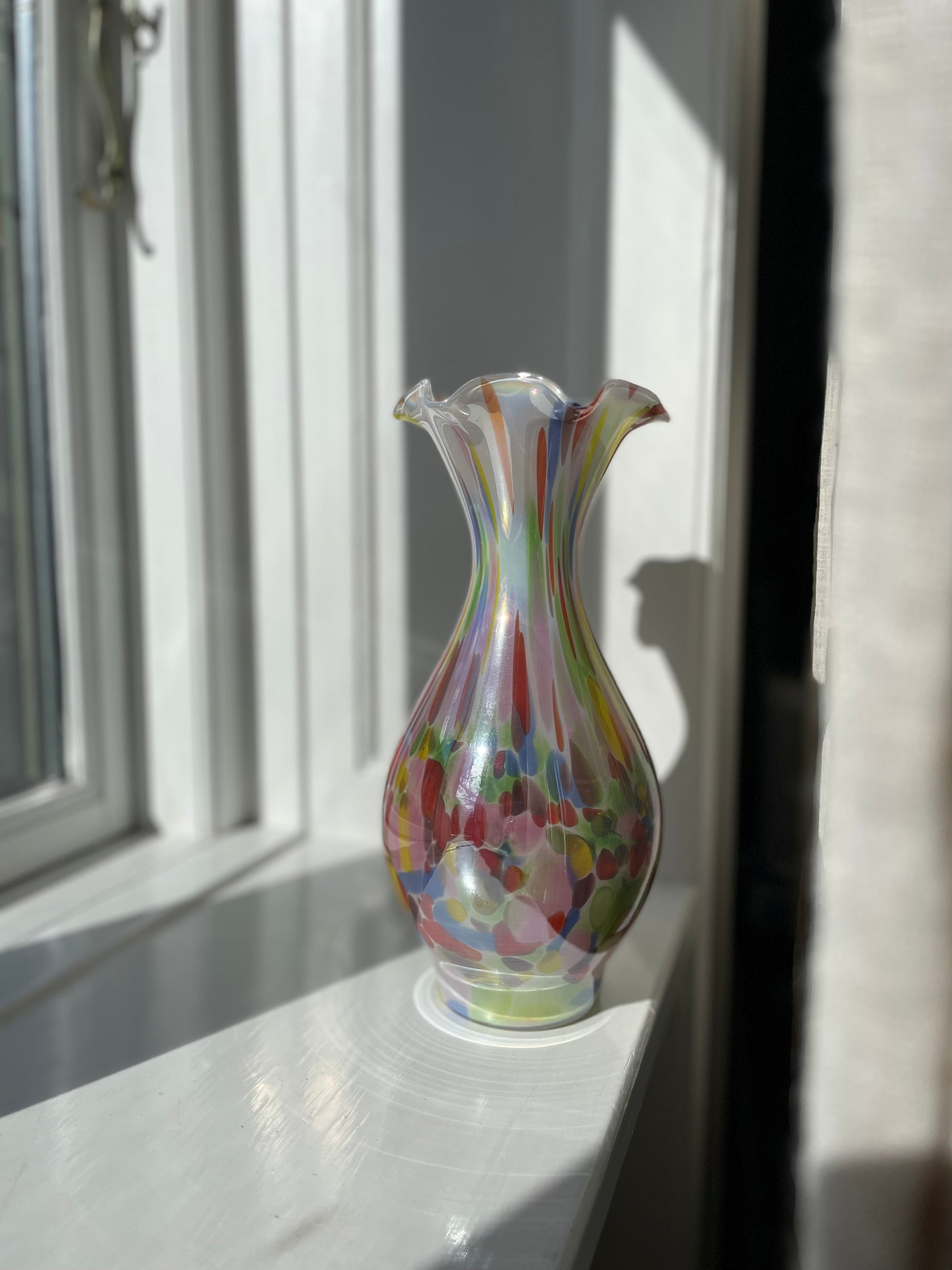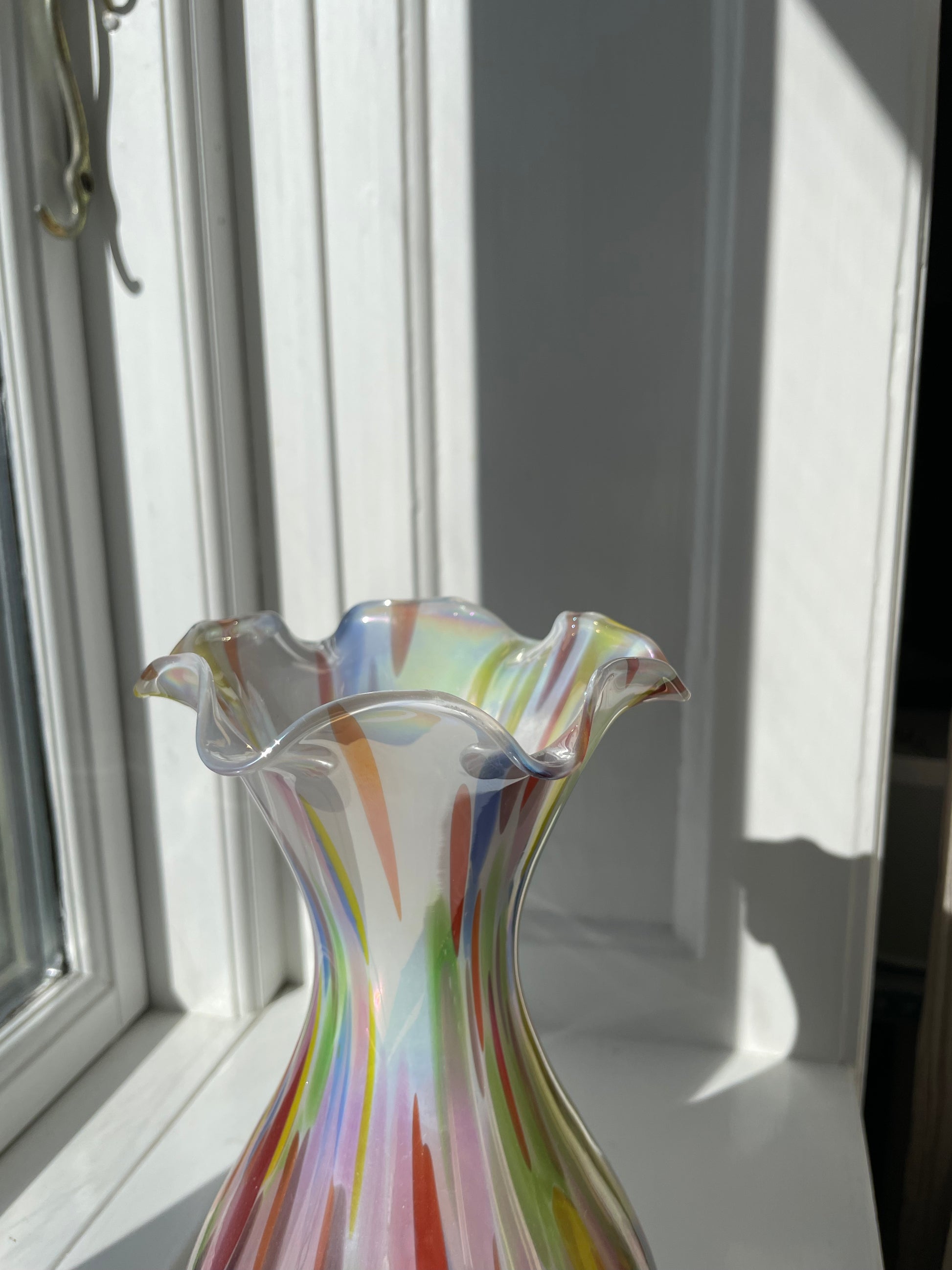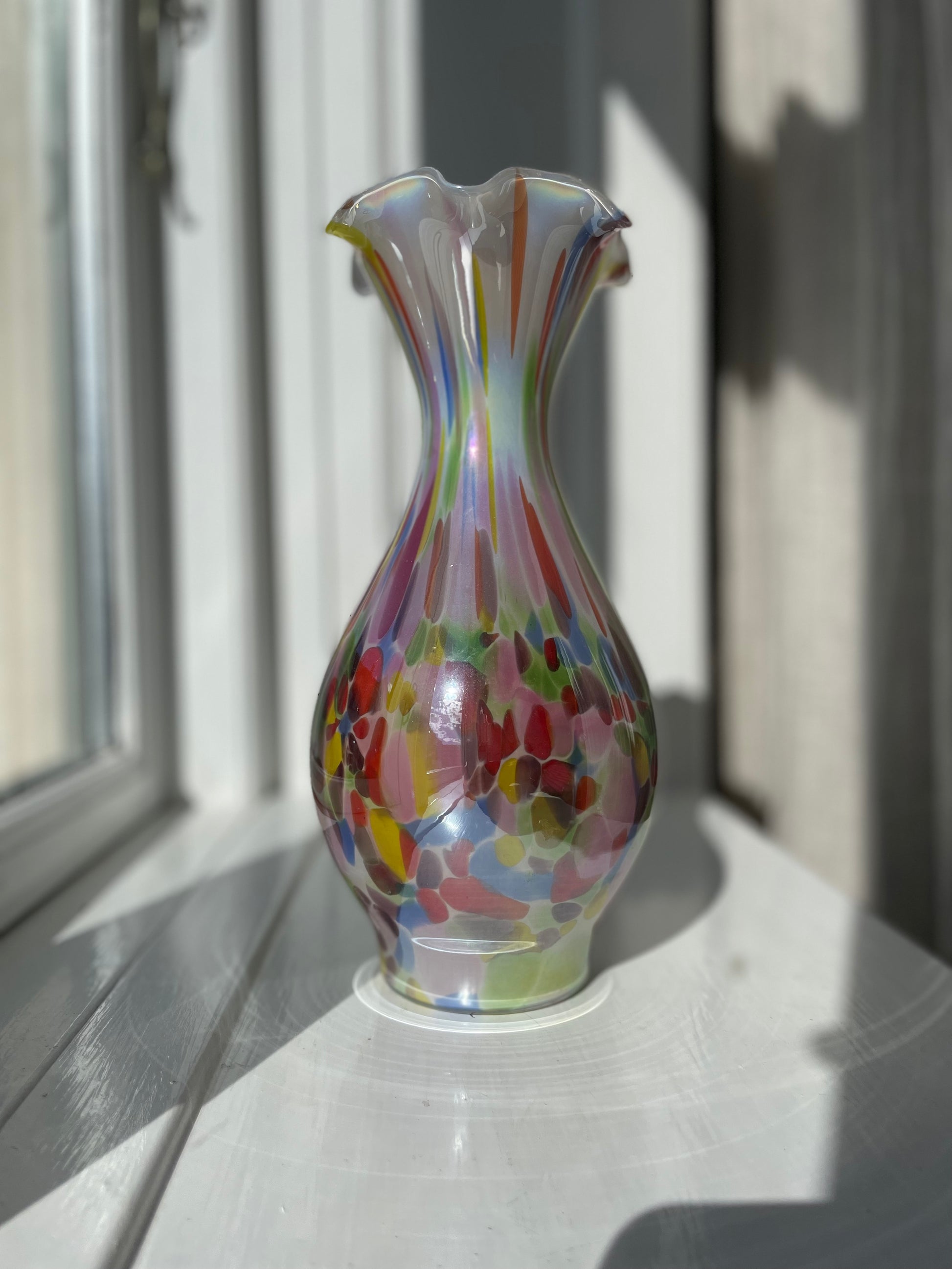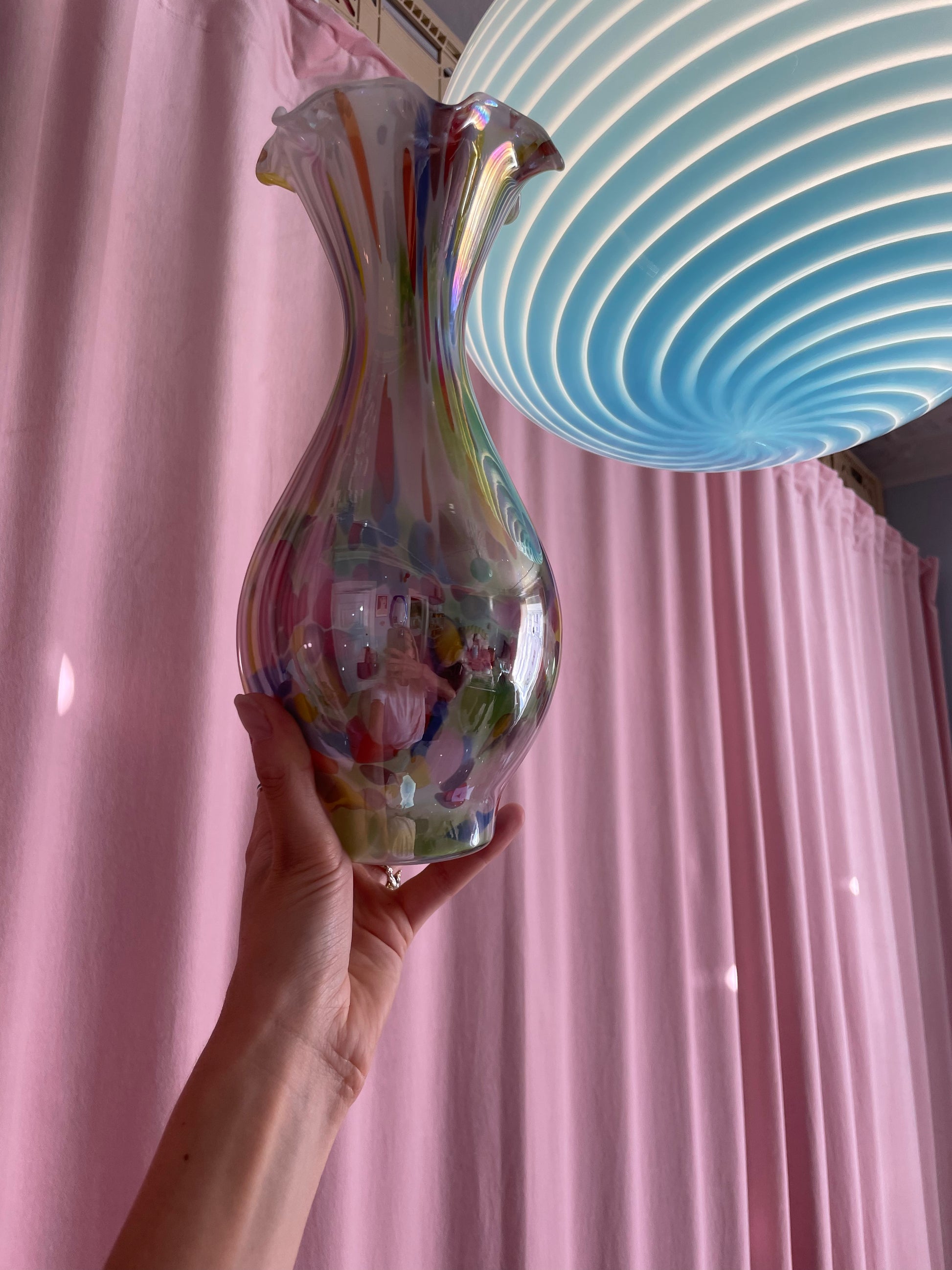 Smuk konfetti-vase med maksimum shine er klar til den næste buket! Måler 28cm i højden og 12cm i bredden. Standen er fænomenal!