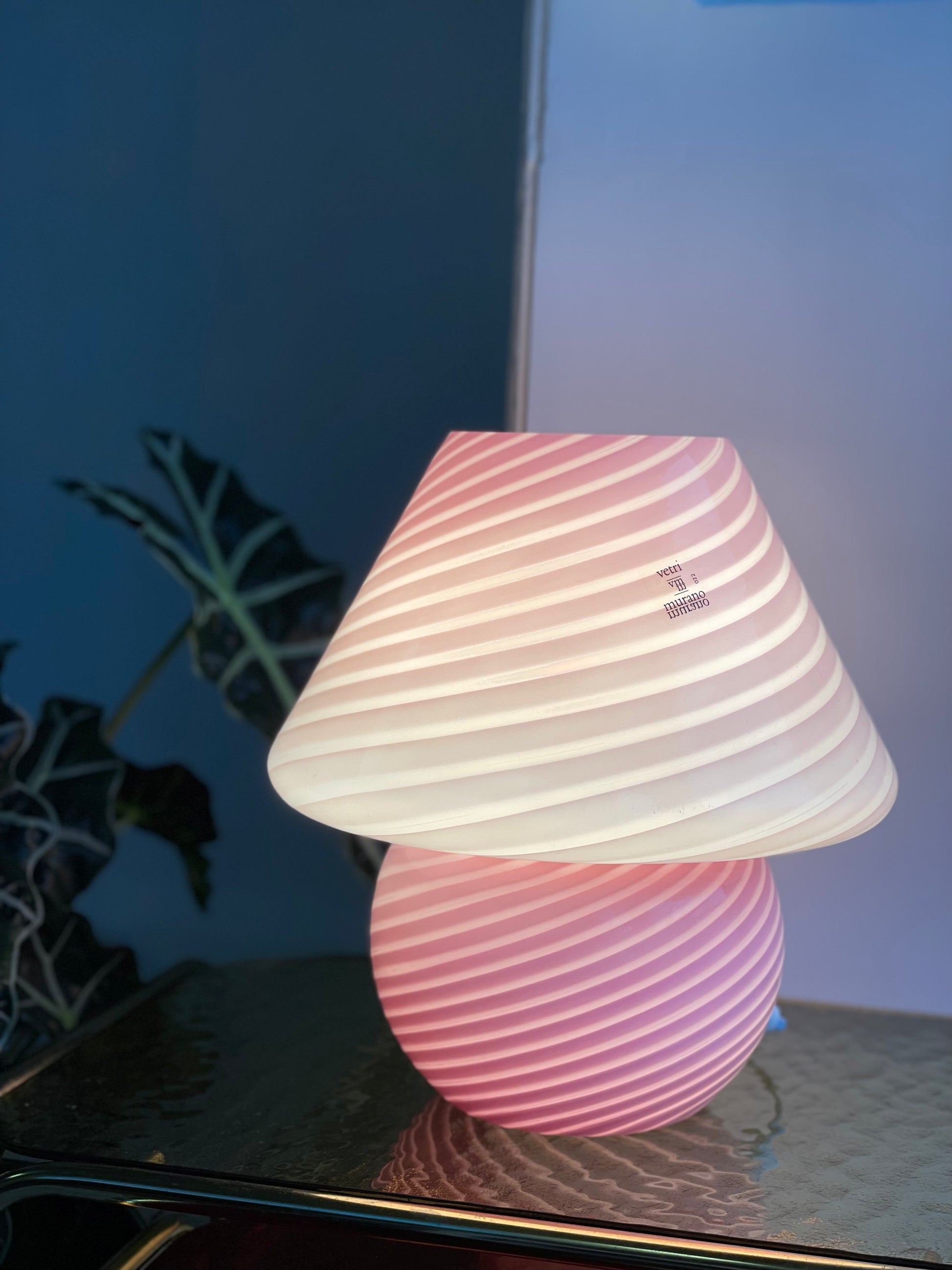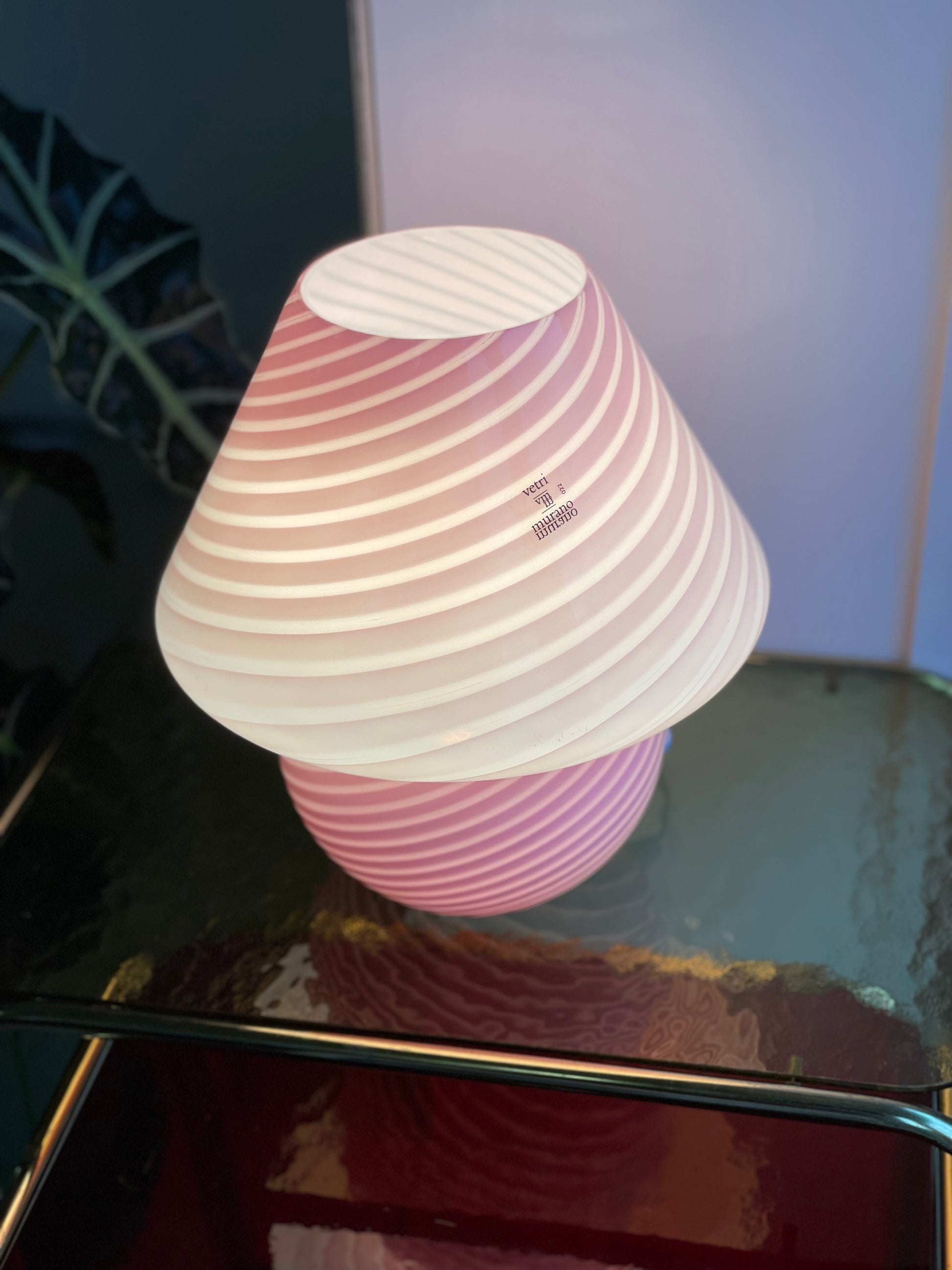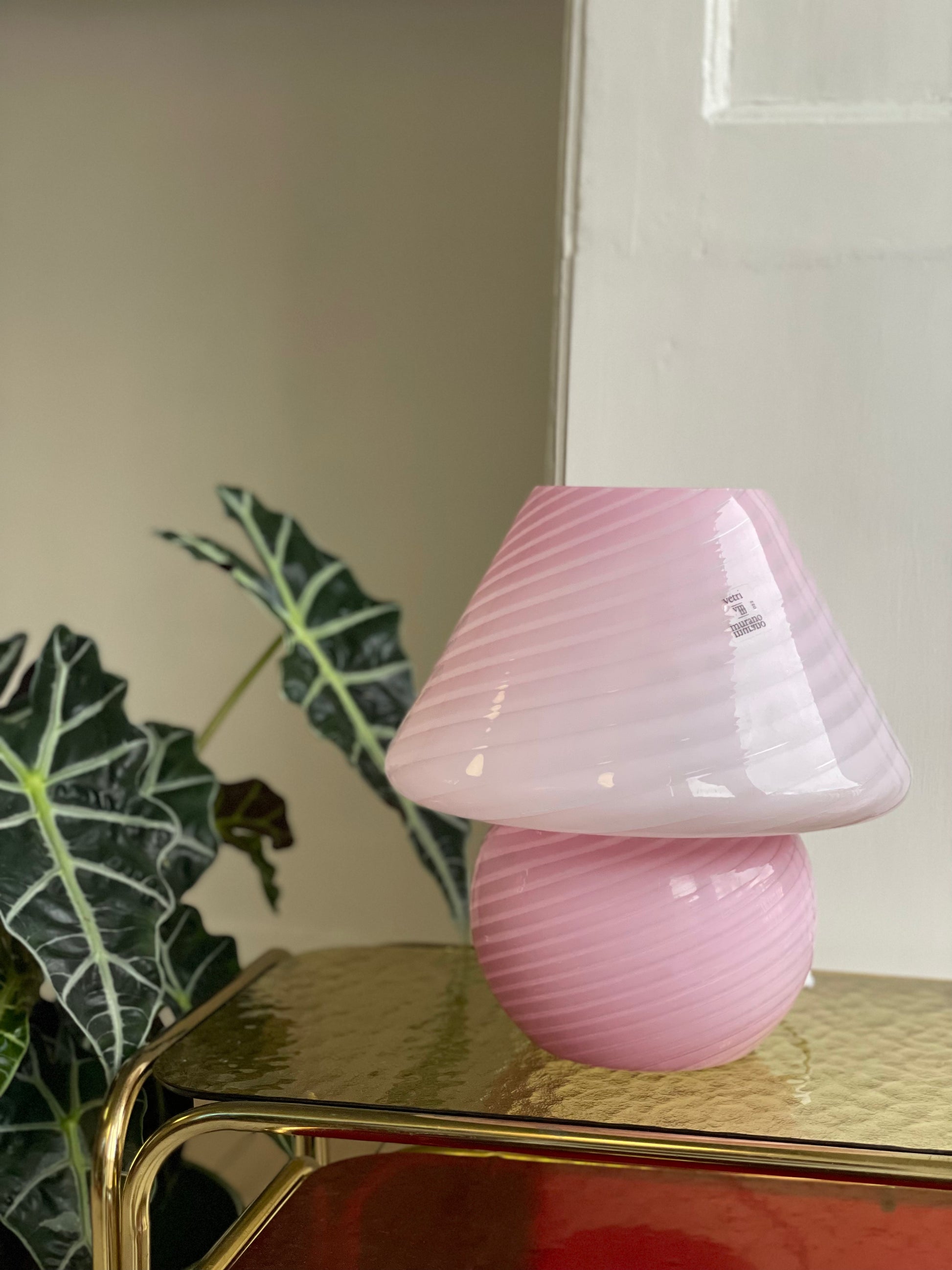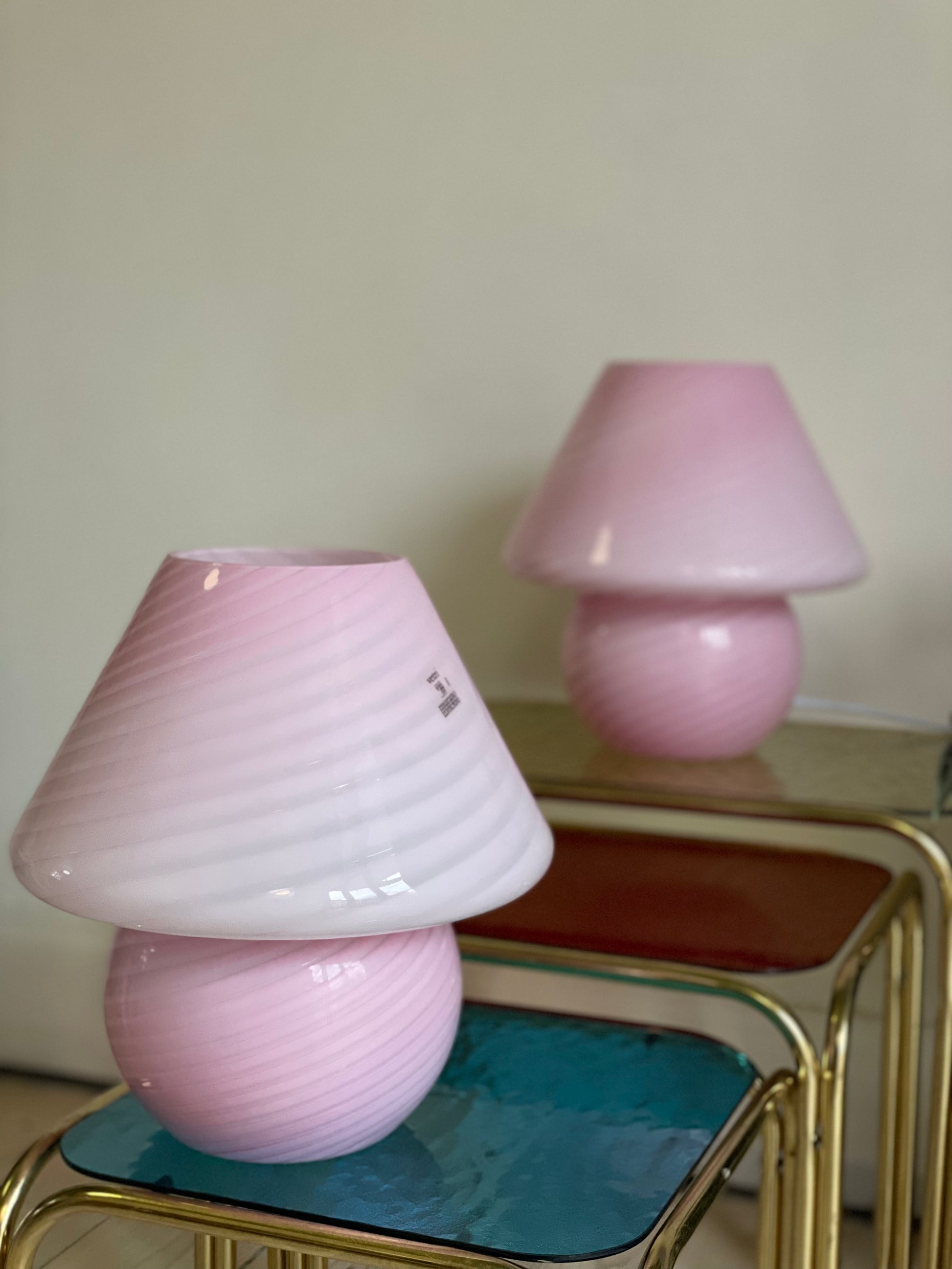 Lyserød vintage Vetri Murano mushroom bordlampe