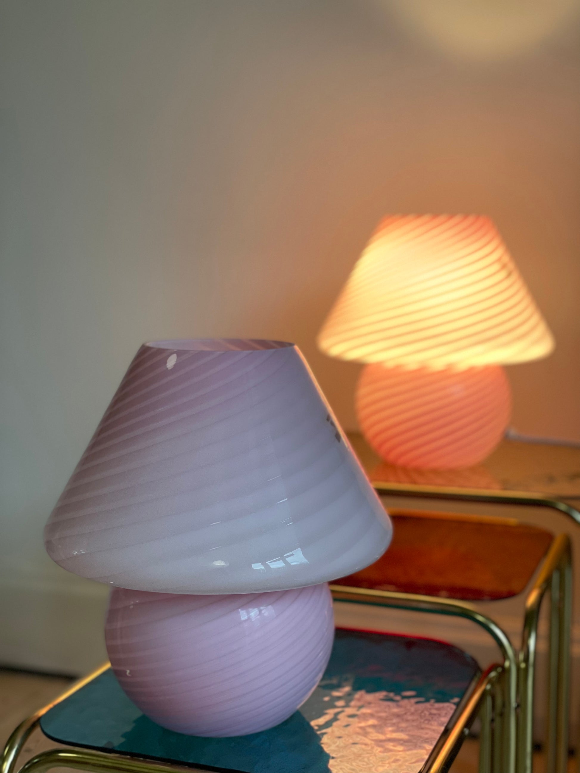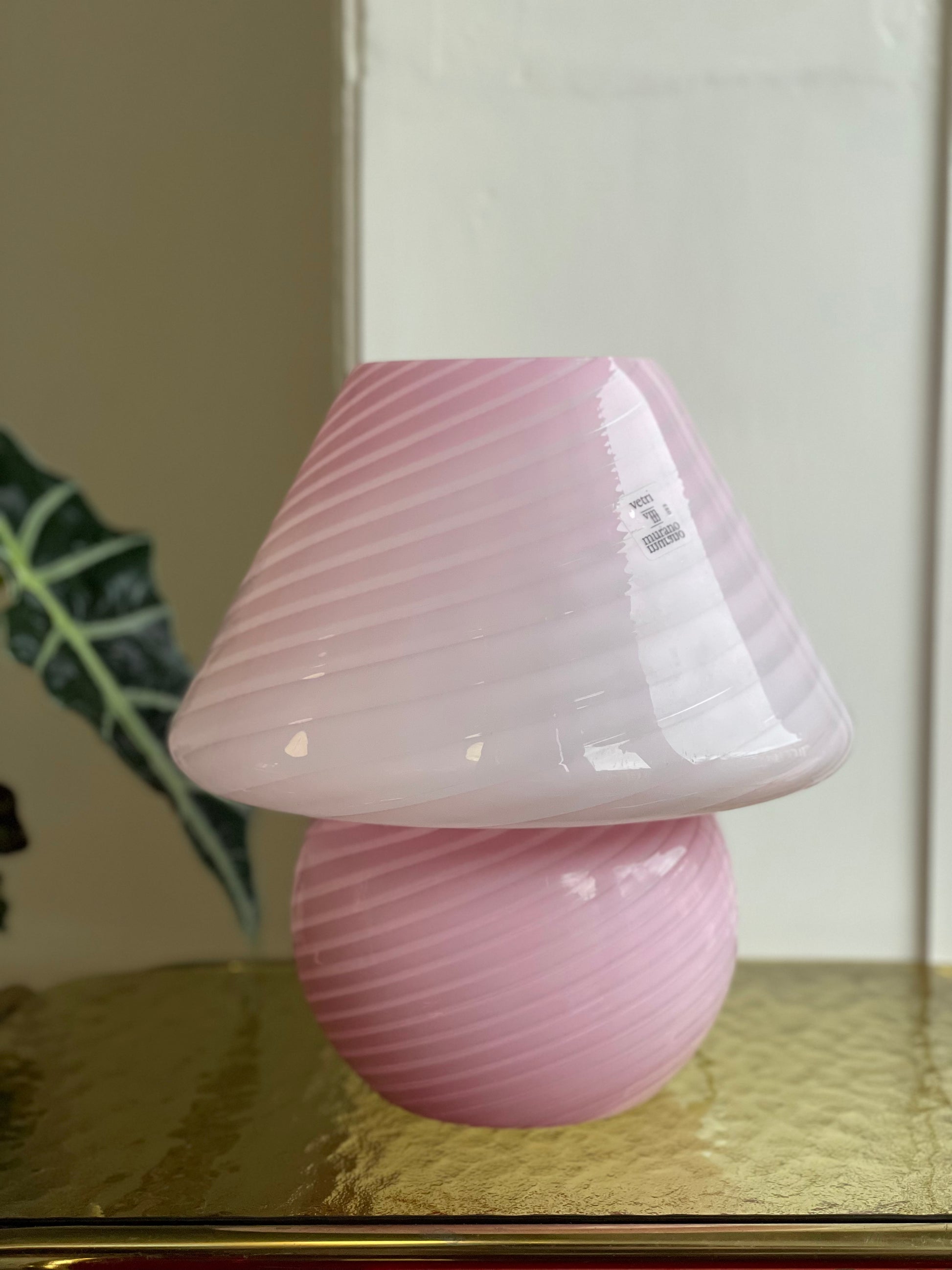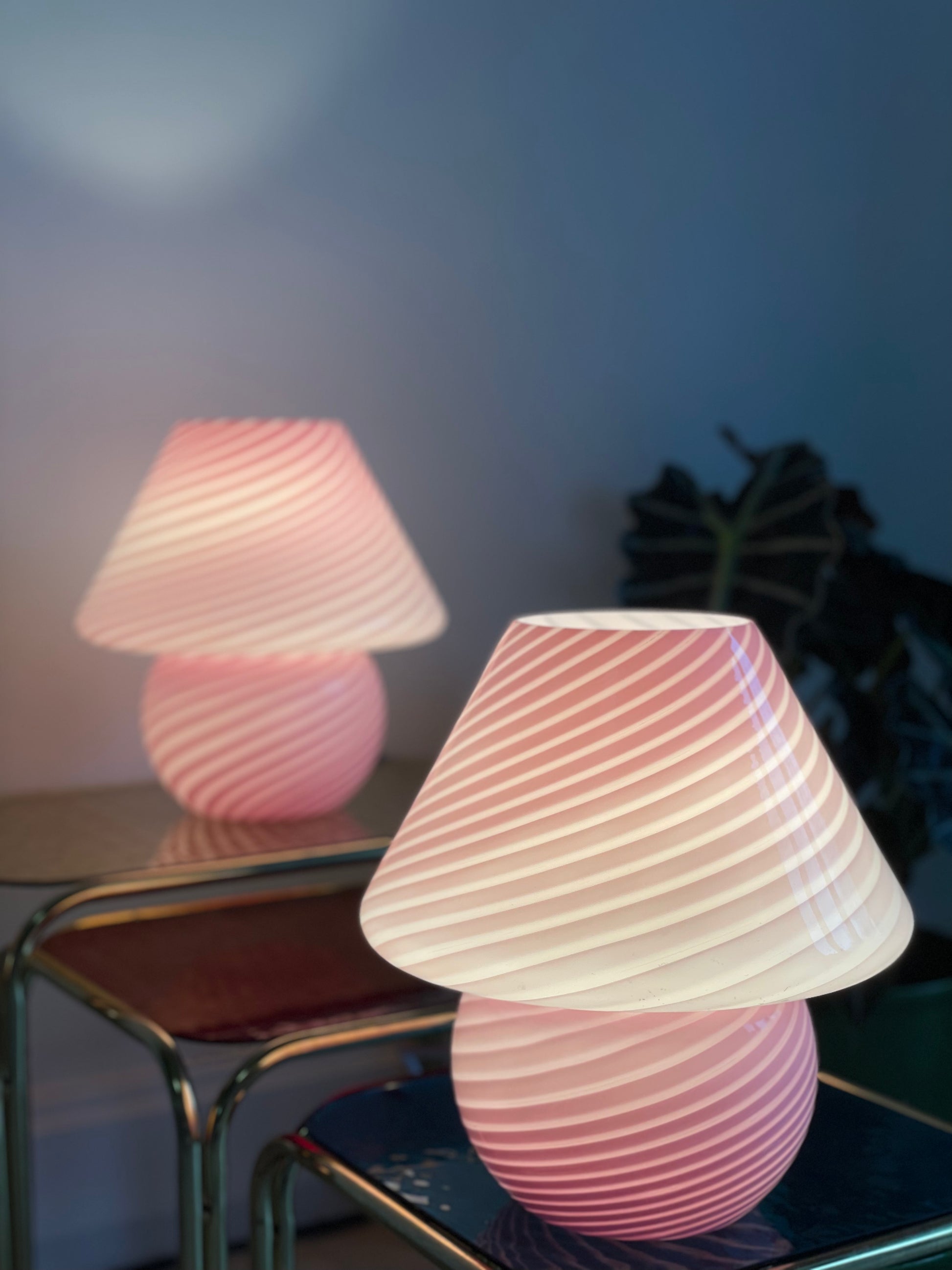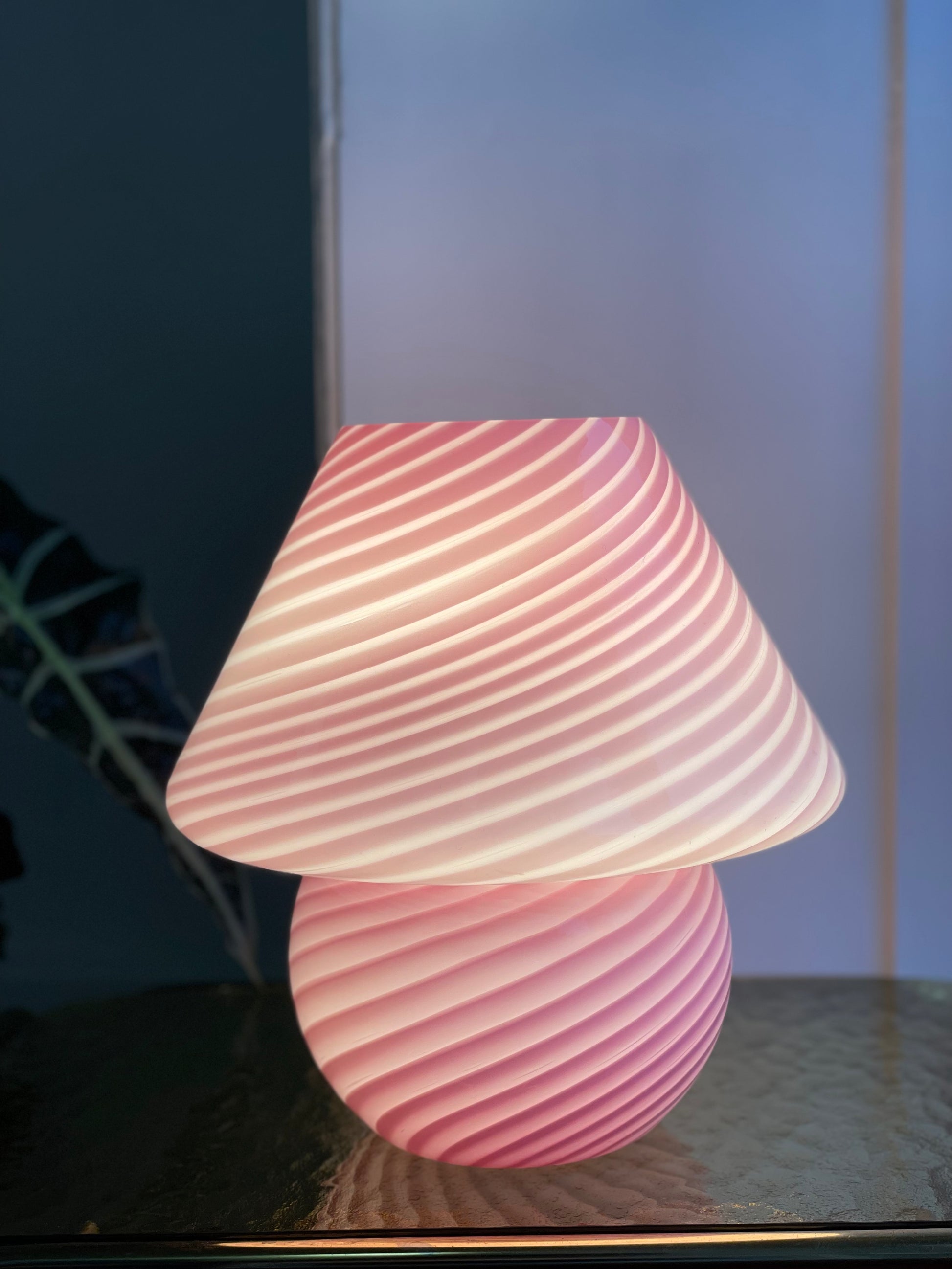 Lyserød vintage Vetri Murano mushroom bordlampe