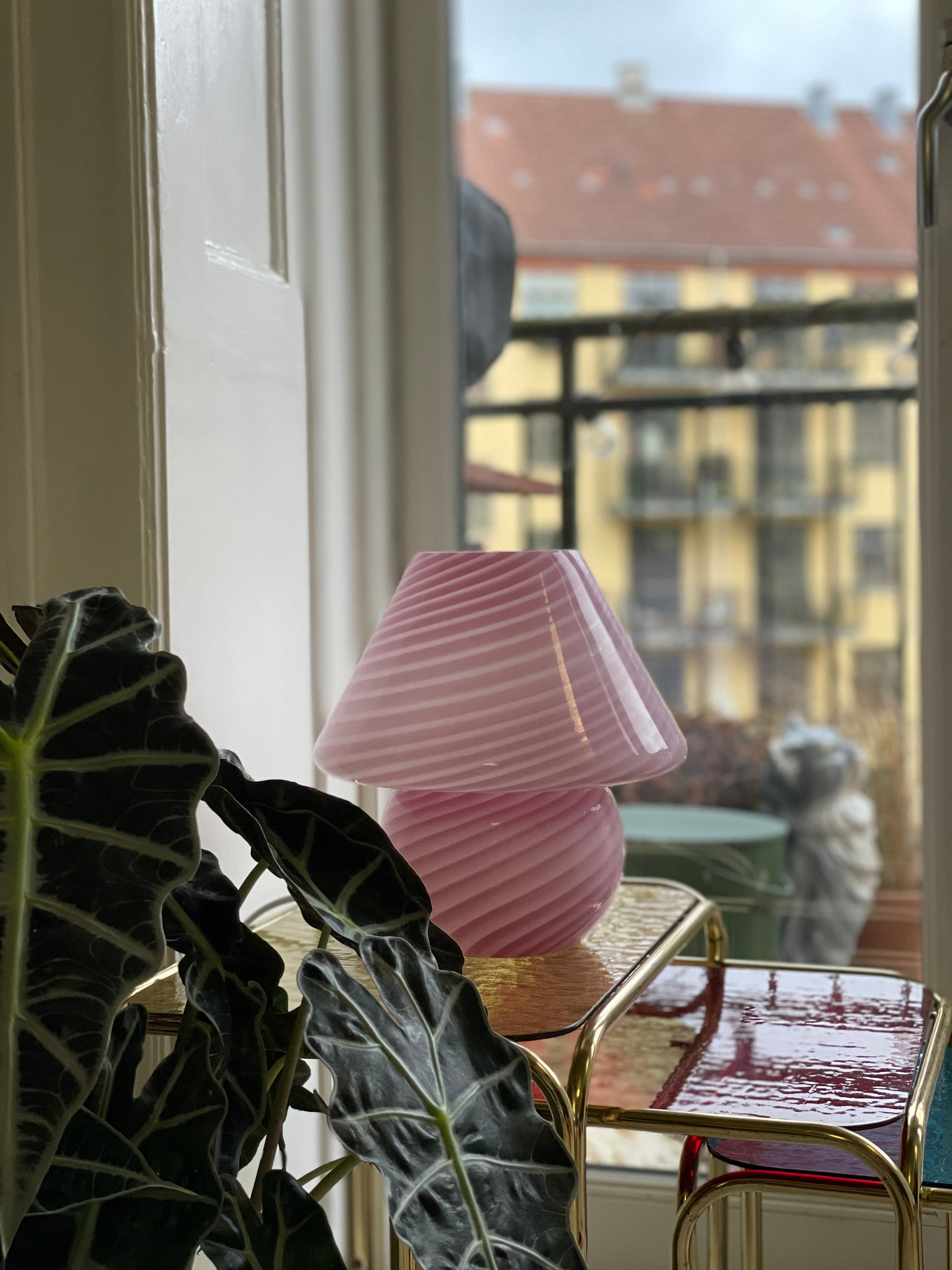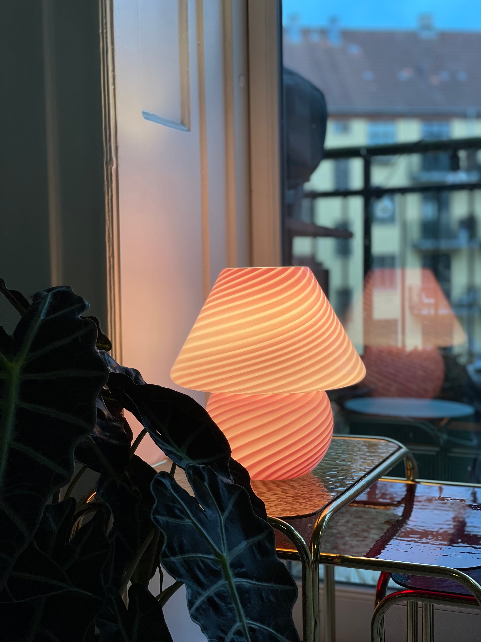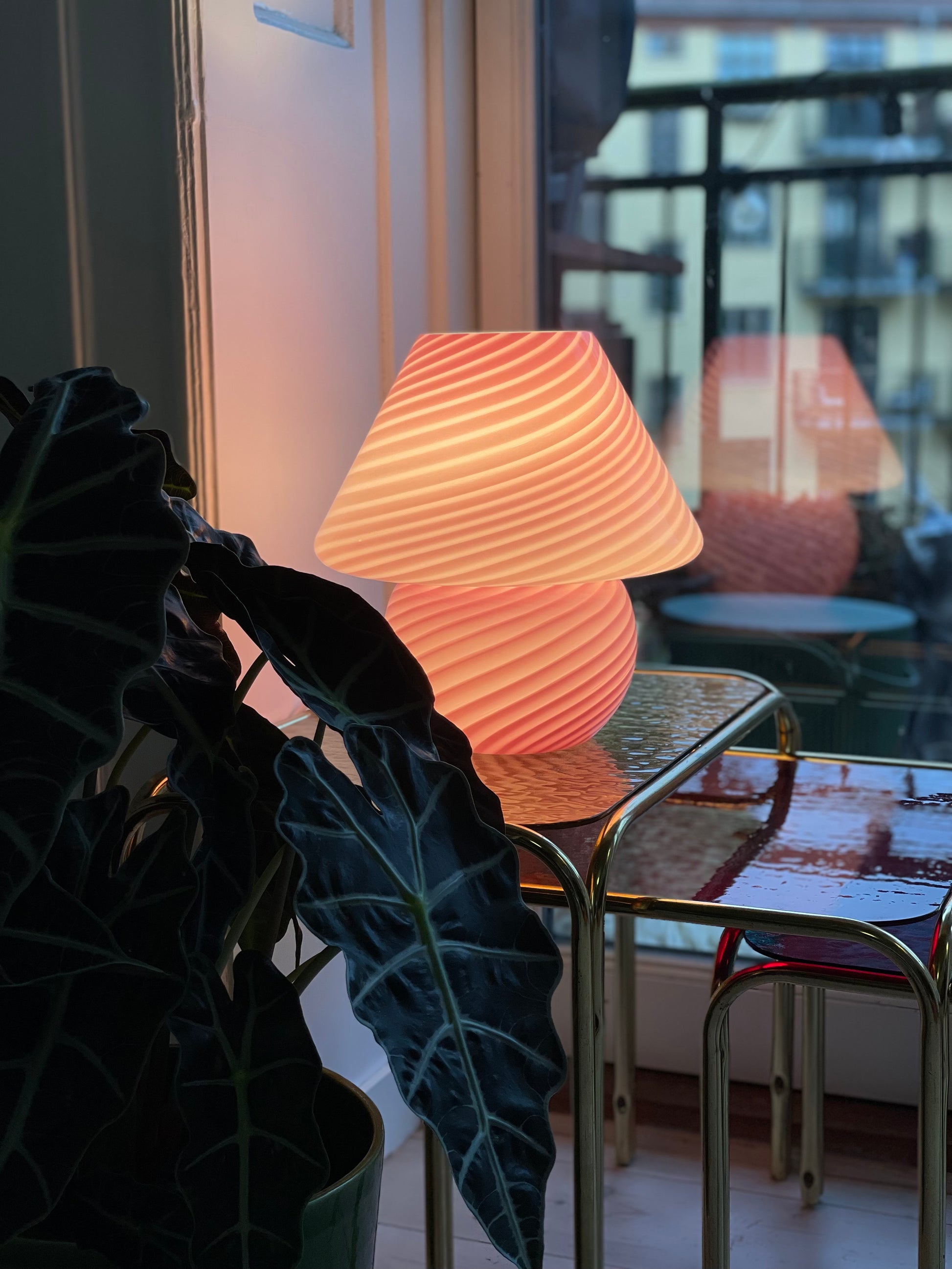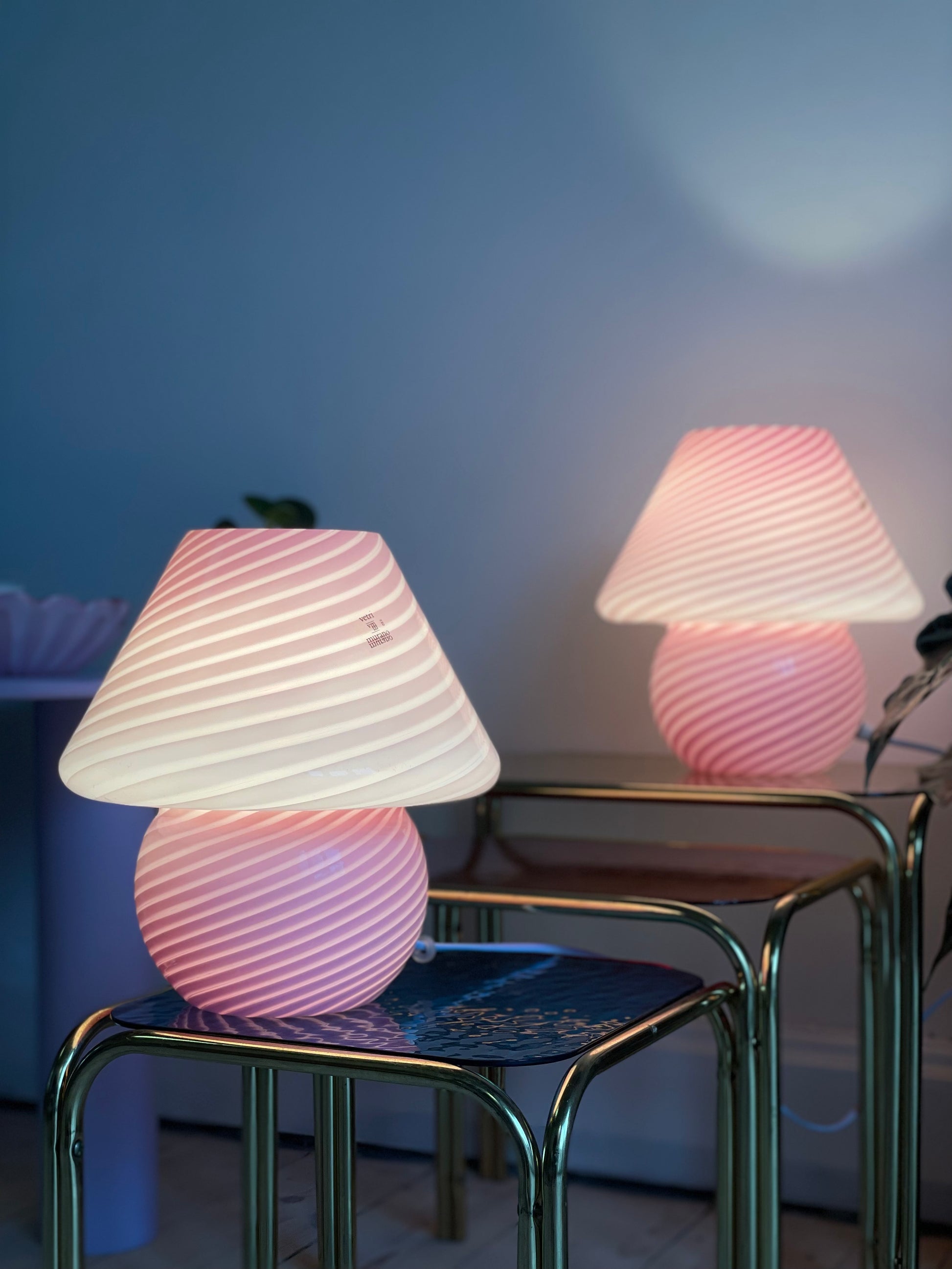 Lyserød vintage Vetri Murano mushroom bordlampe