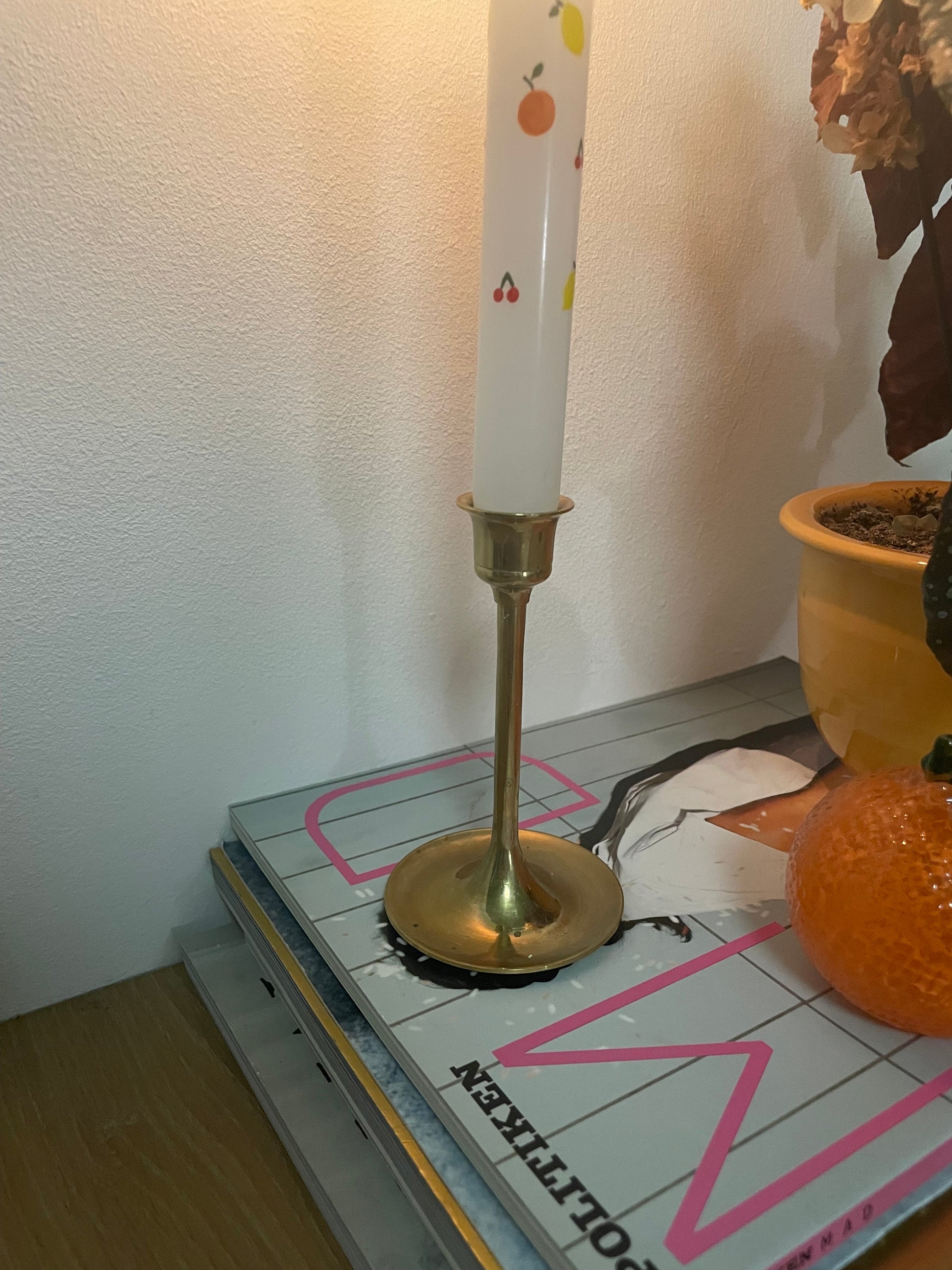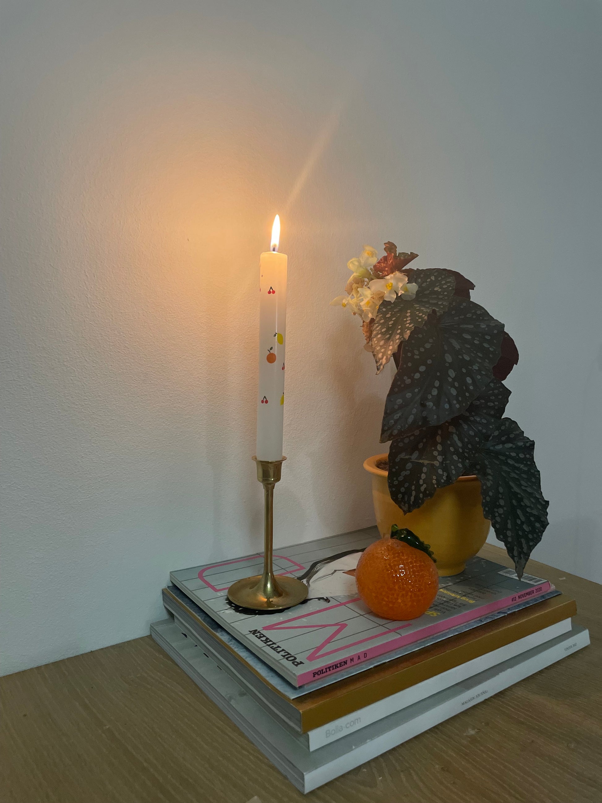 Vores messingstager er renset for stearin og klar til brug, men fremstår derudover med masser af dejlig patina som tegn på et langt liv. Se derfor godt på billederne før du køber eller ræk ud ved spørgsmål. Hvis du er til det polerede look, så kan du desuden snildt selv pudse messingstagen op.