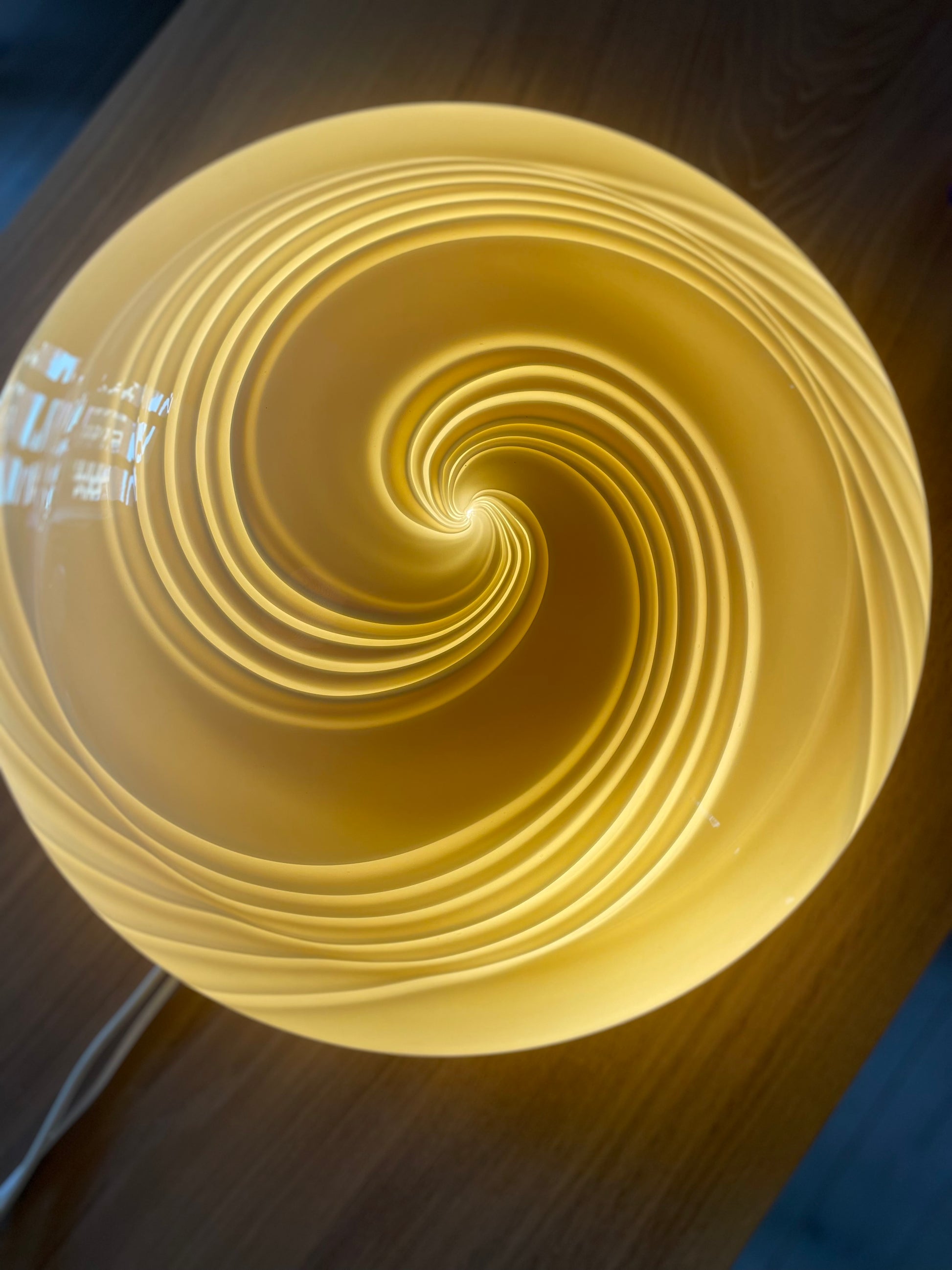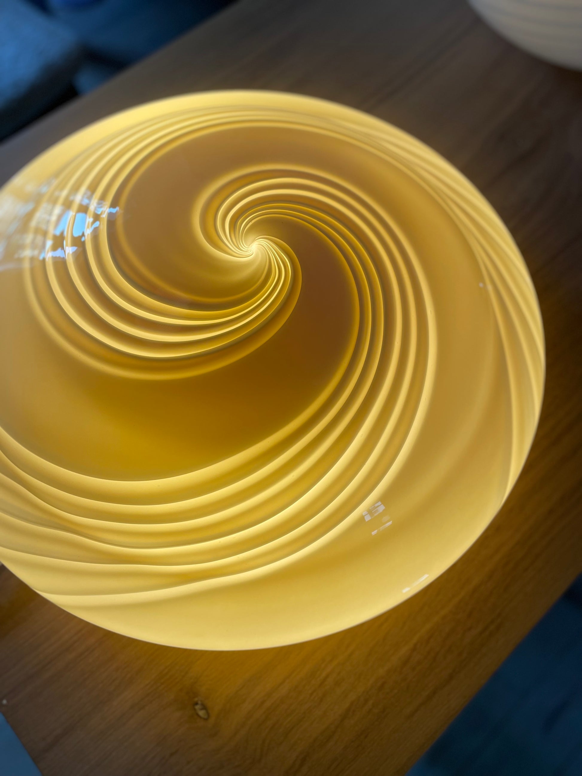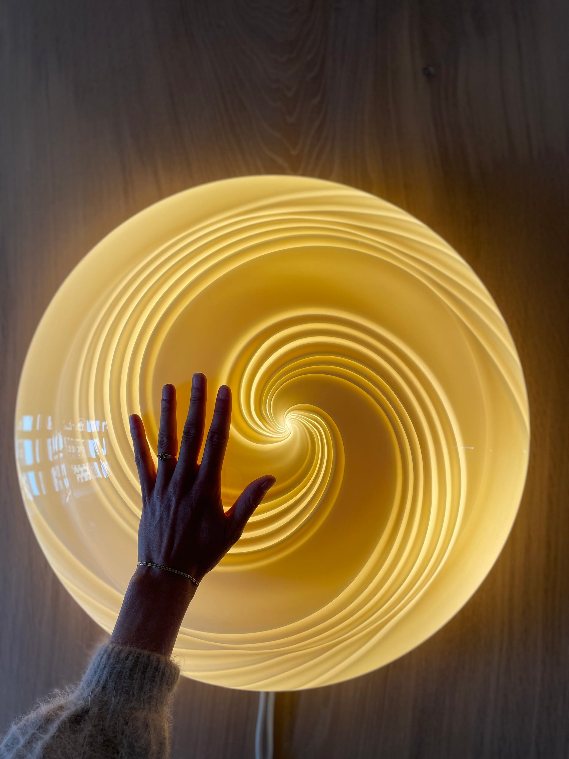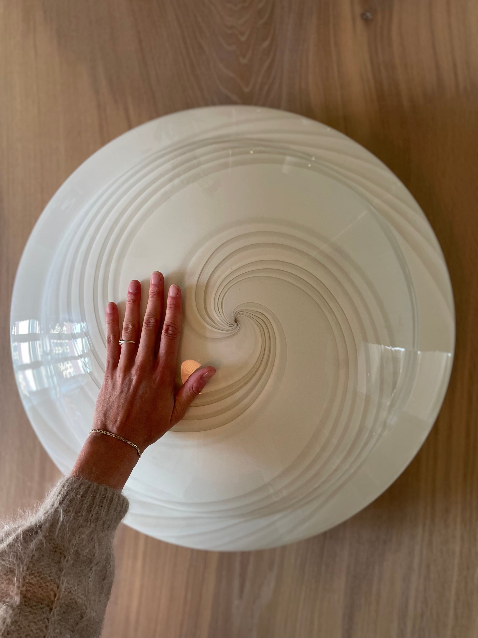 Denne plafond er absolut fantastisk! Lavet i vintage Murano glas kan den både hænges på væg og i loft. Med sin afdæmpede farve i slukket tilstand og helt vilde shine i tændt tilstand er den noget helt for sig. Den kommer desuden i en størrelse vi ganske sjældent støder på. 60cm i bredden! Den bruger 3 e27 pærer.