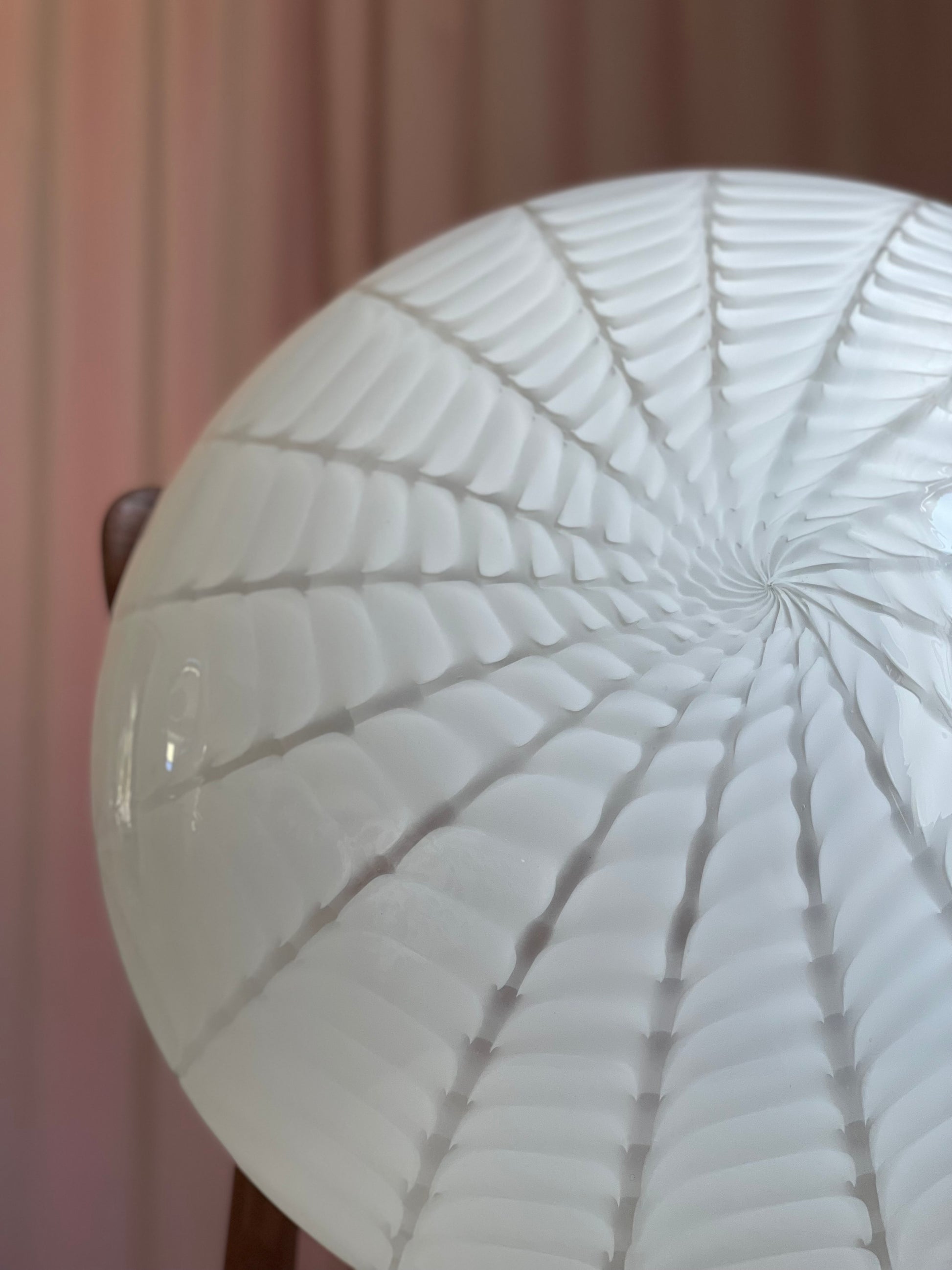 Fantastisk stor plafond til ophæng på væg eller i loft. Lampen er lavet i vintage Murano glas og kommer med 2 e27 fatninger, men flere kan monteres. Denne smukke lampe er lavet i en teknik der kaldes peacock og måler hele 48cm i bredden. Absolut et unikum!
