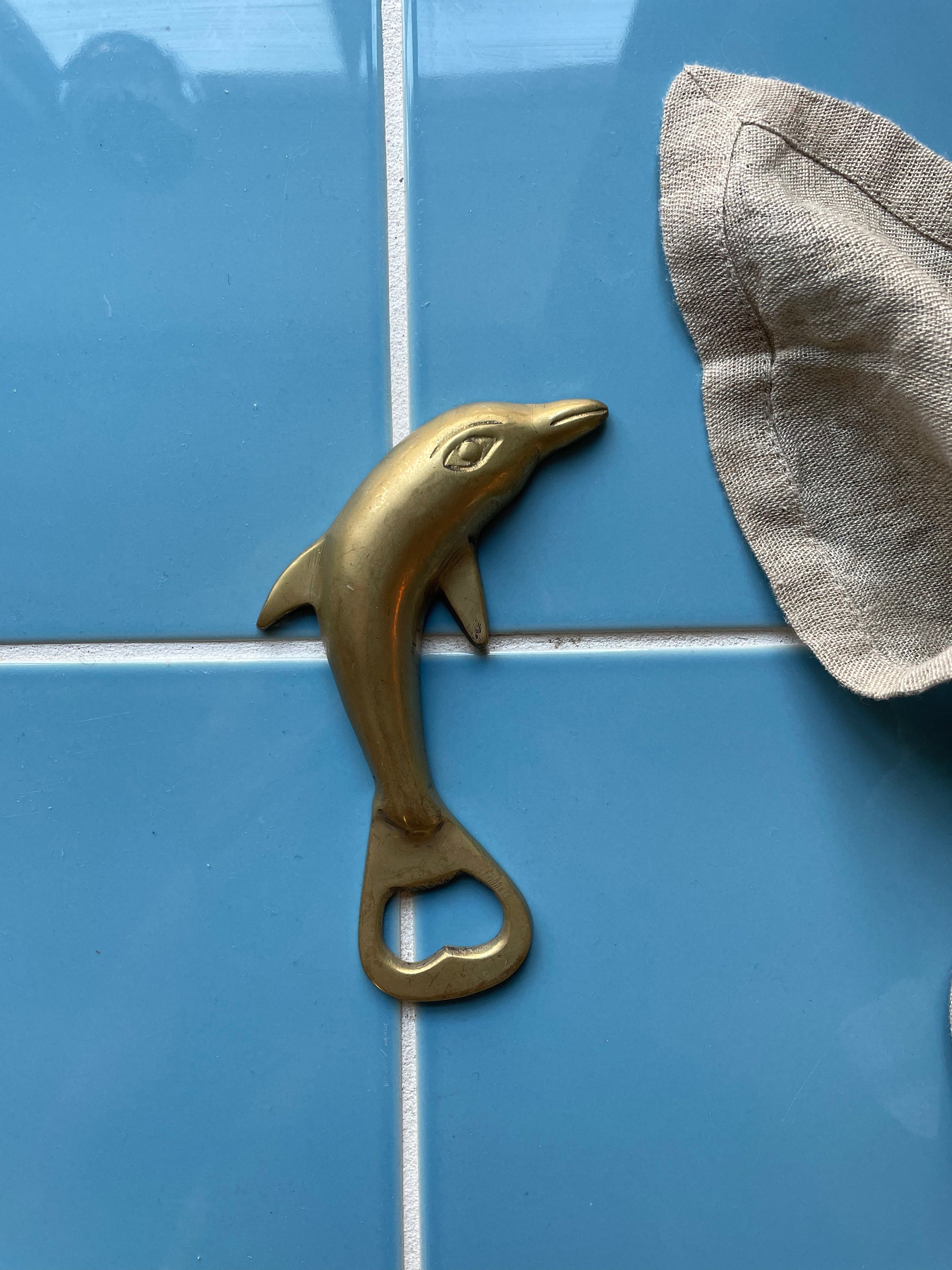 En lækker gammel messingfarvet oplukker formet som en delfin.