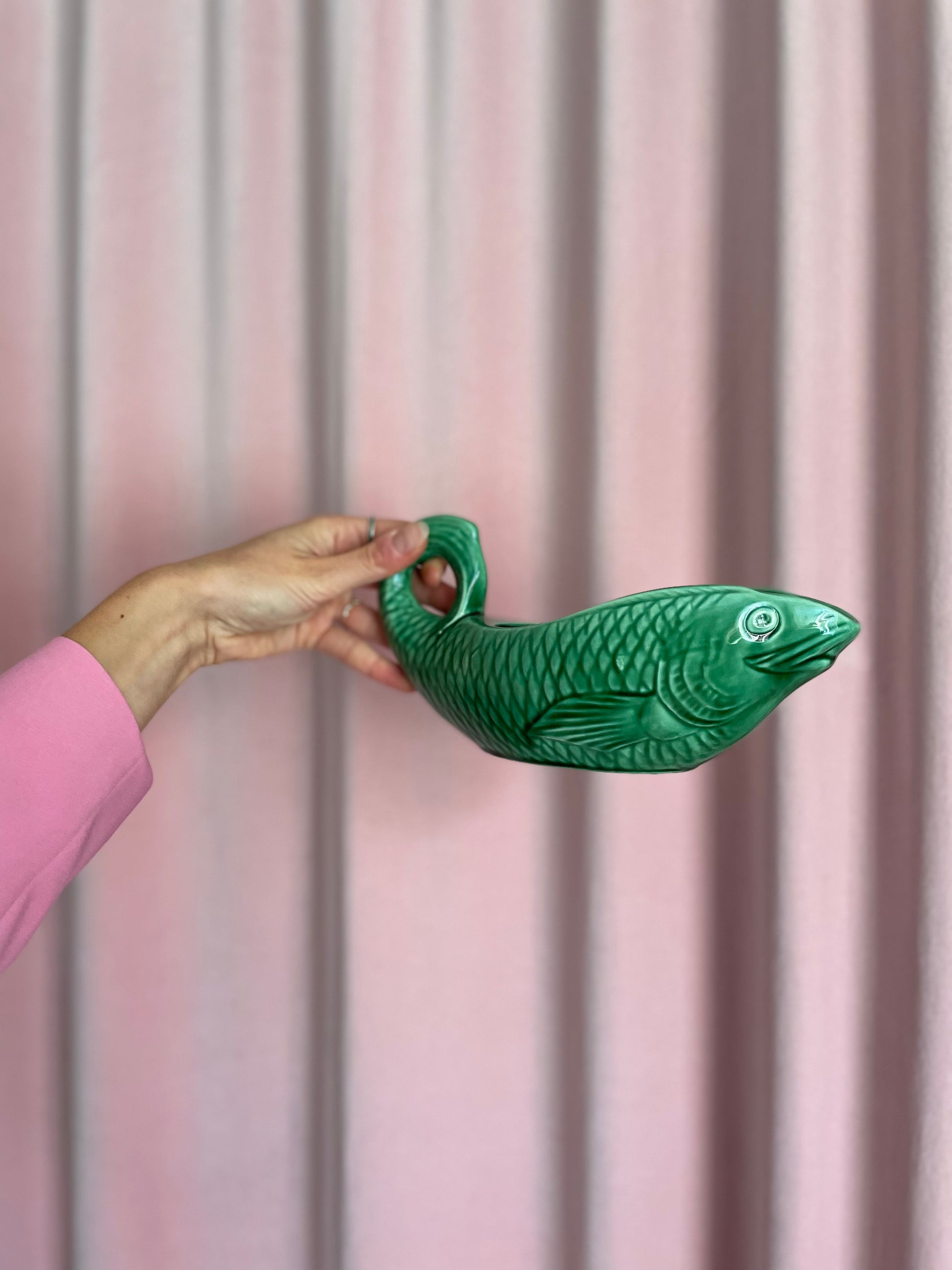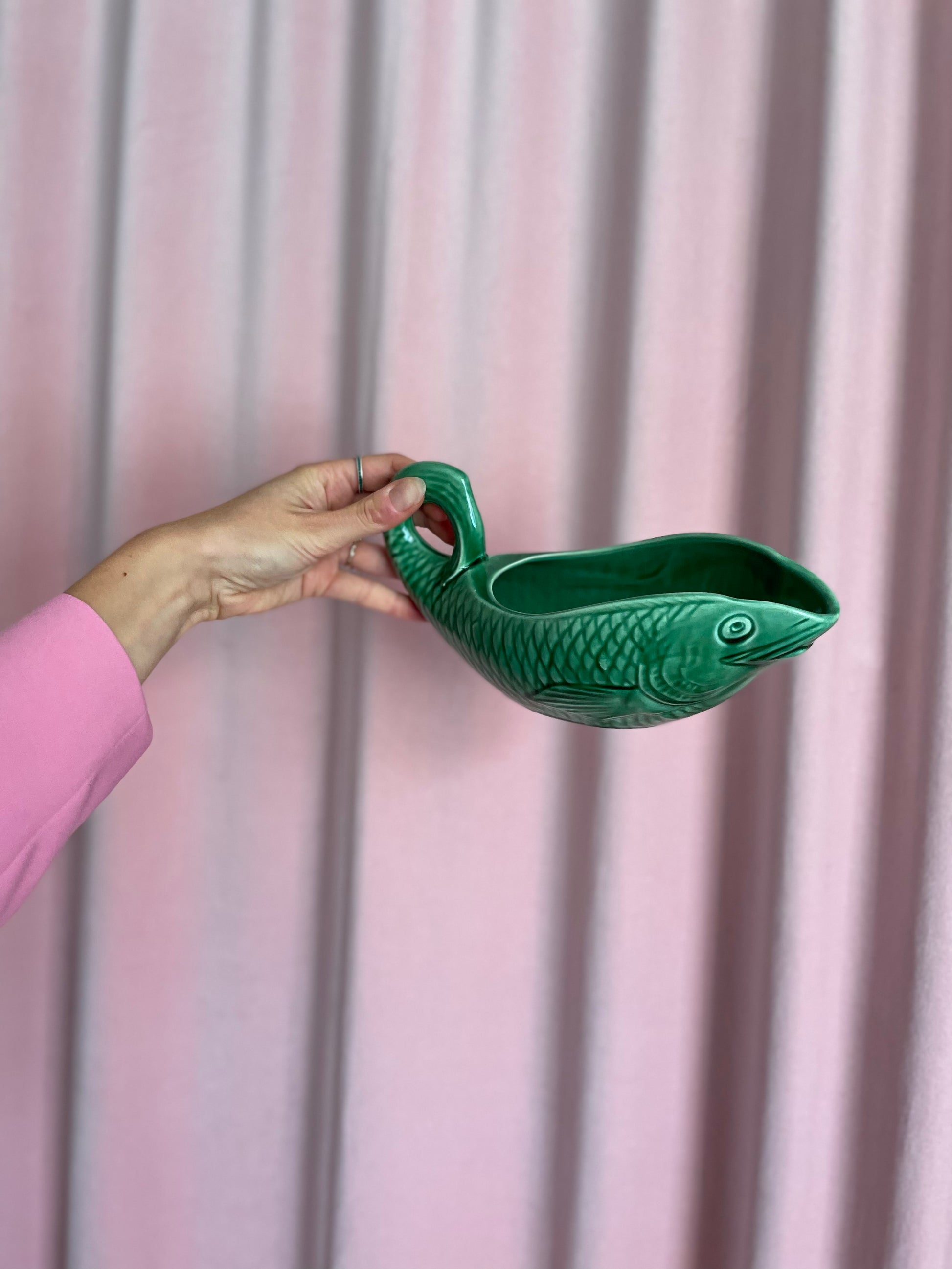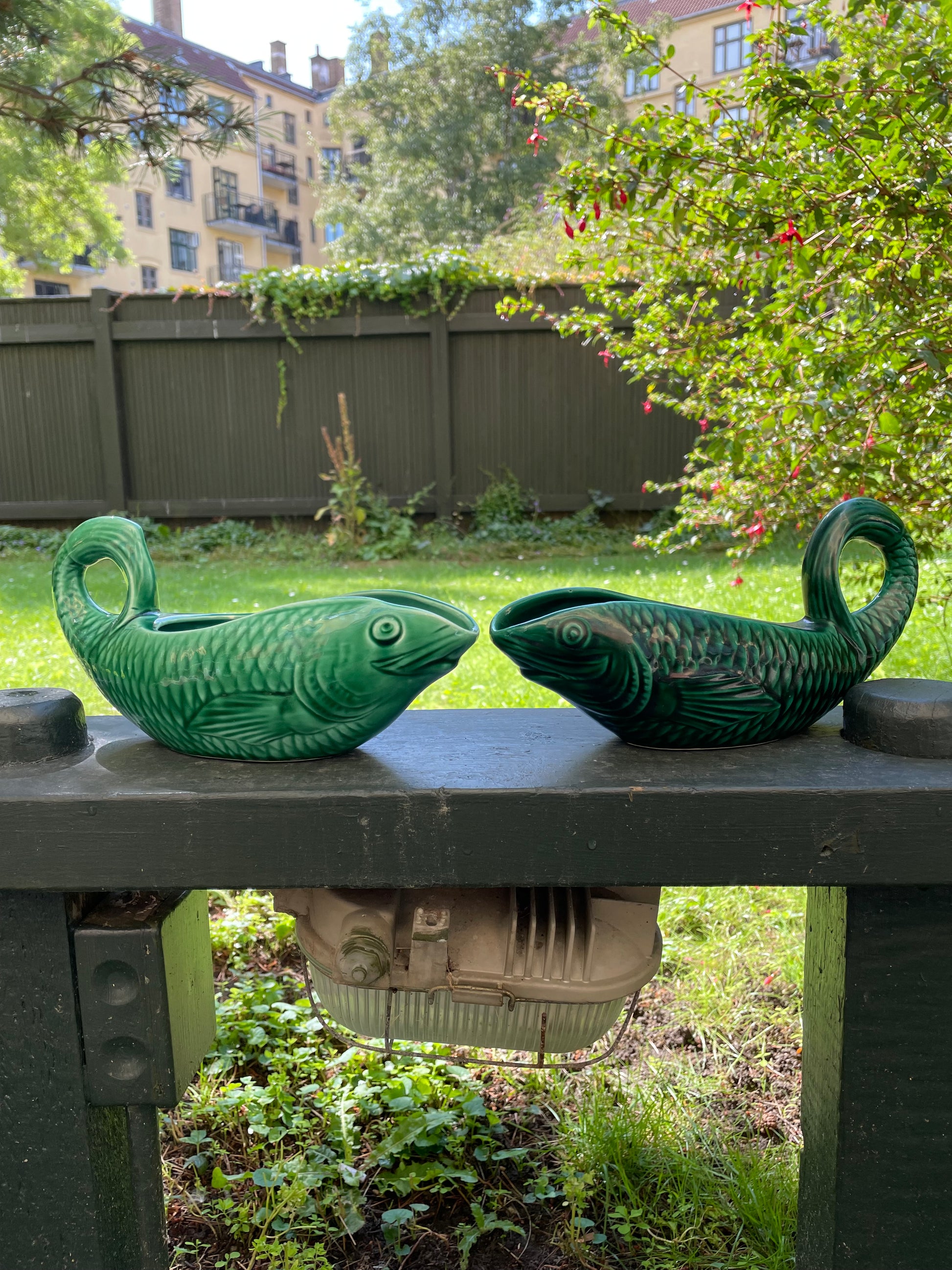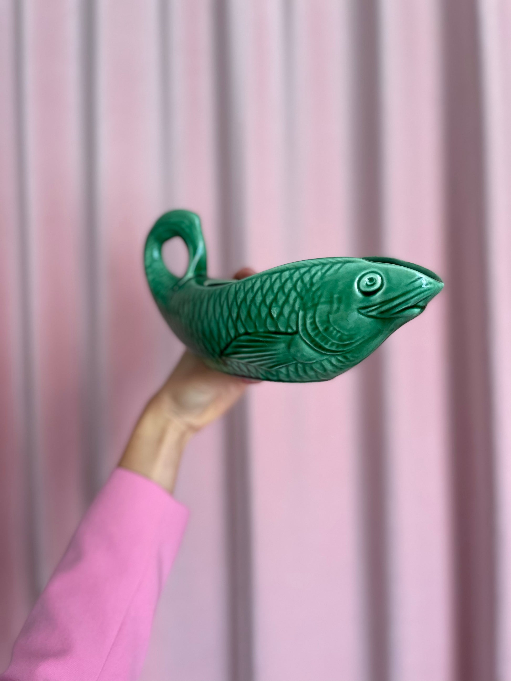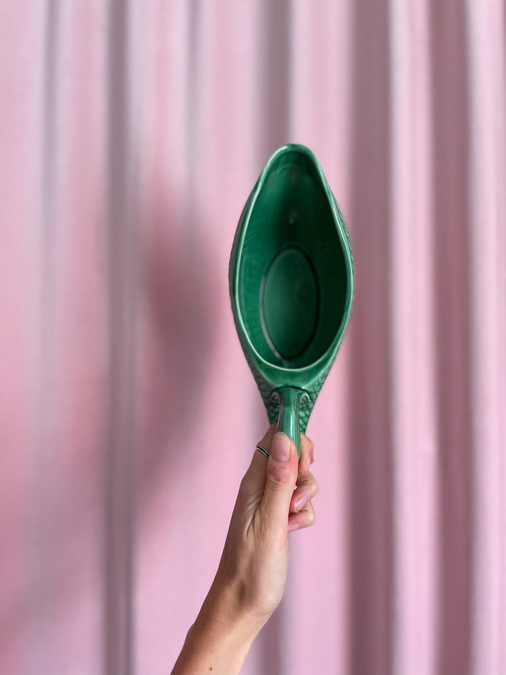 Kande til sauce fra franske Sarreguemines i smuk stand og skinnende grøn farve.