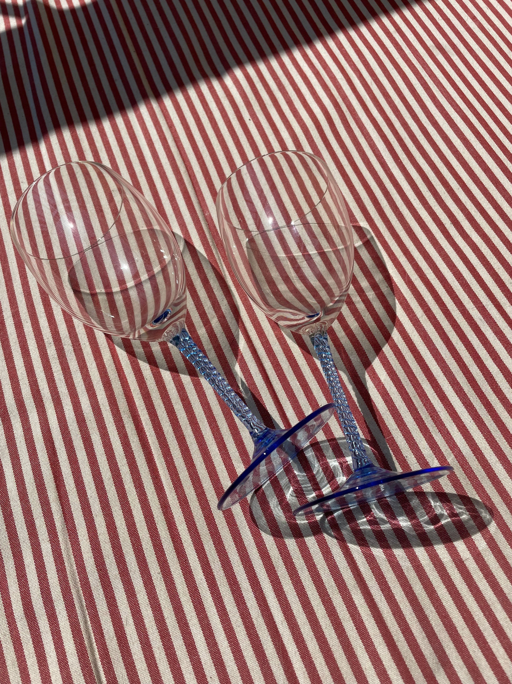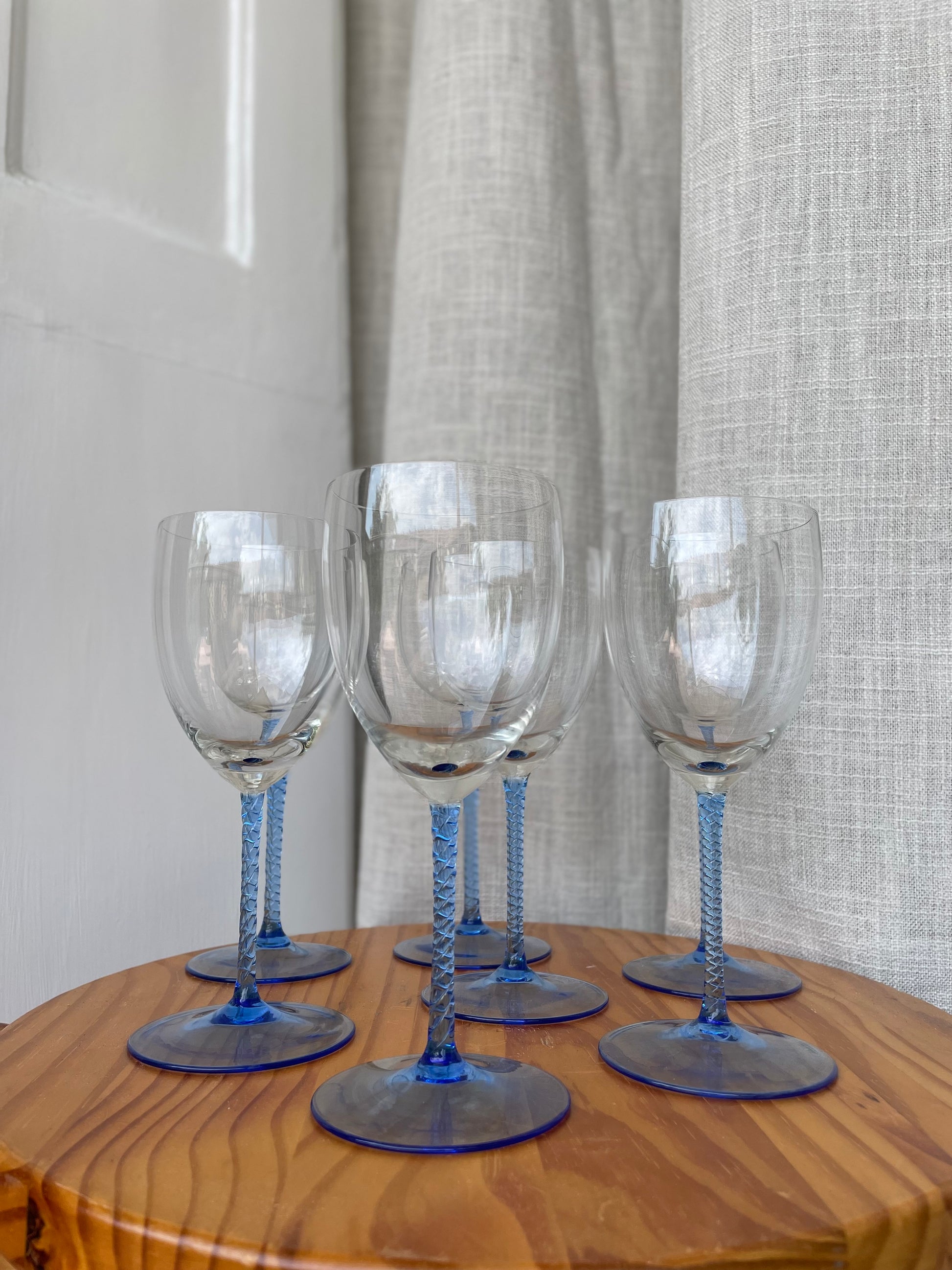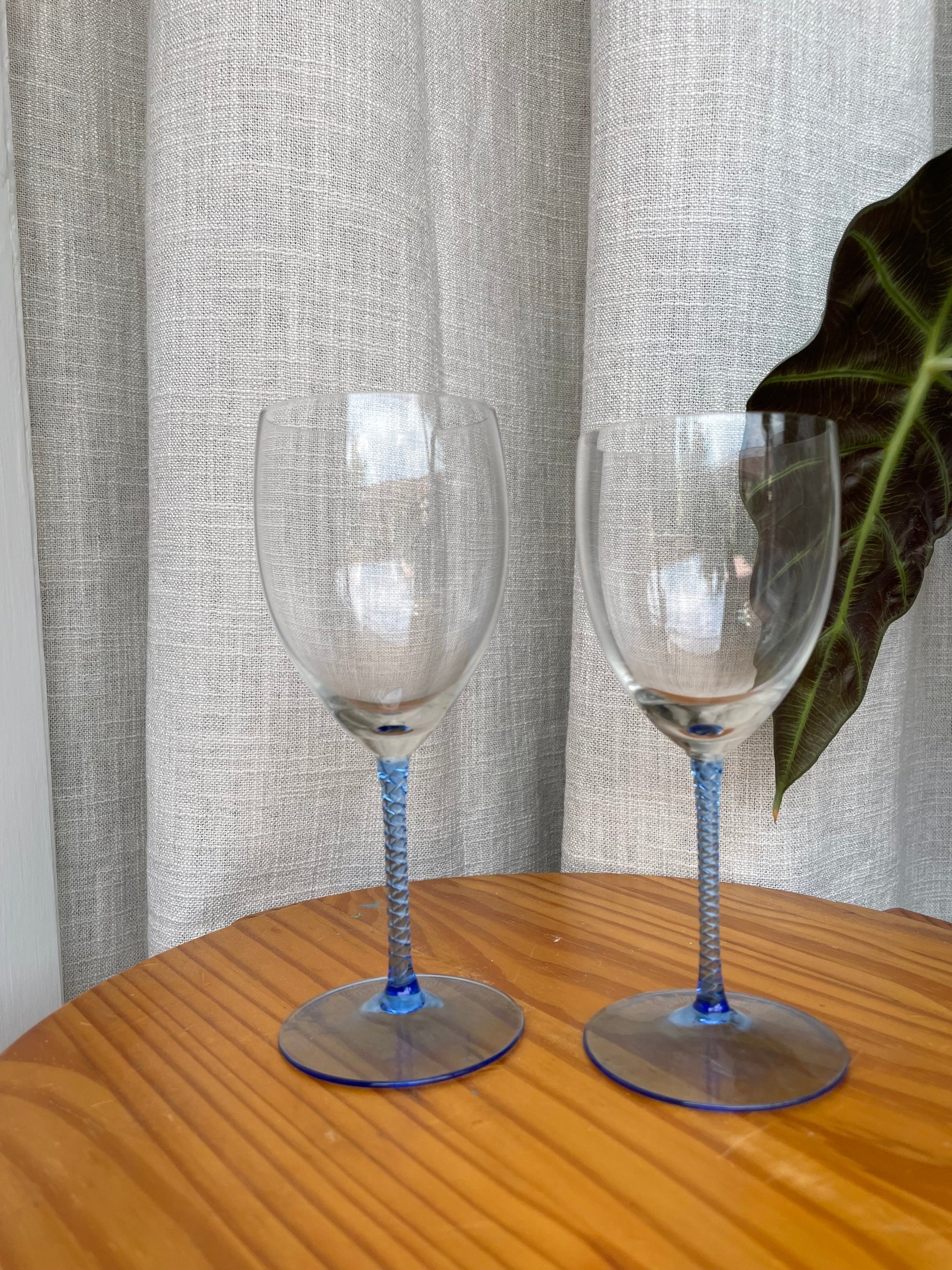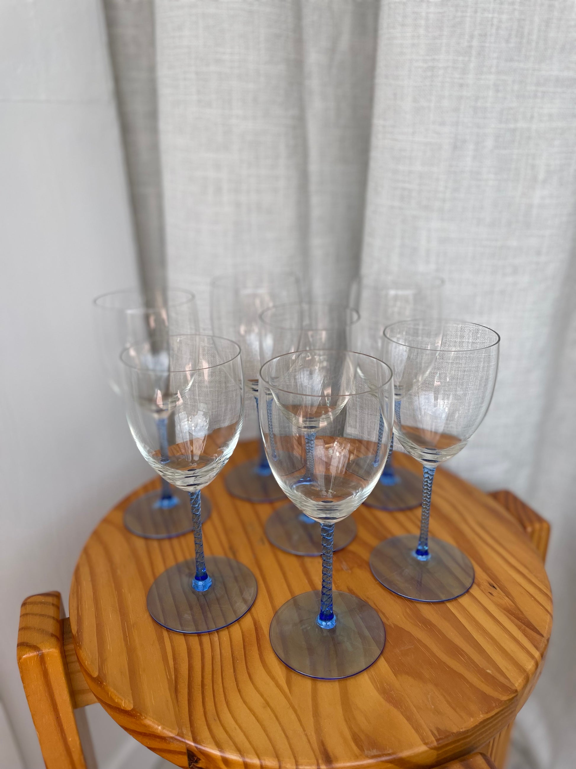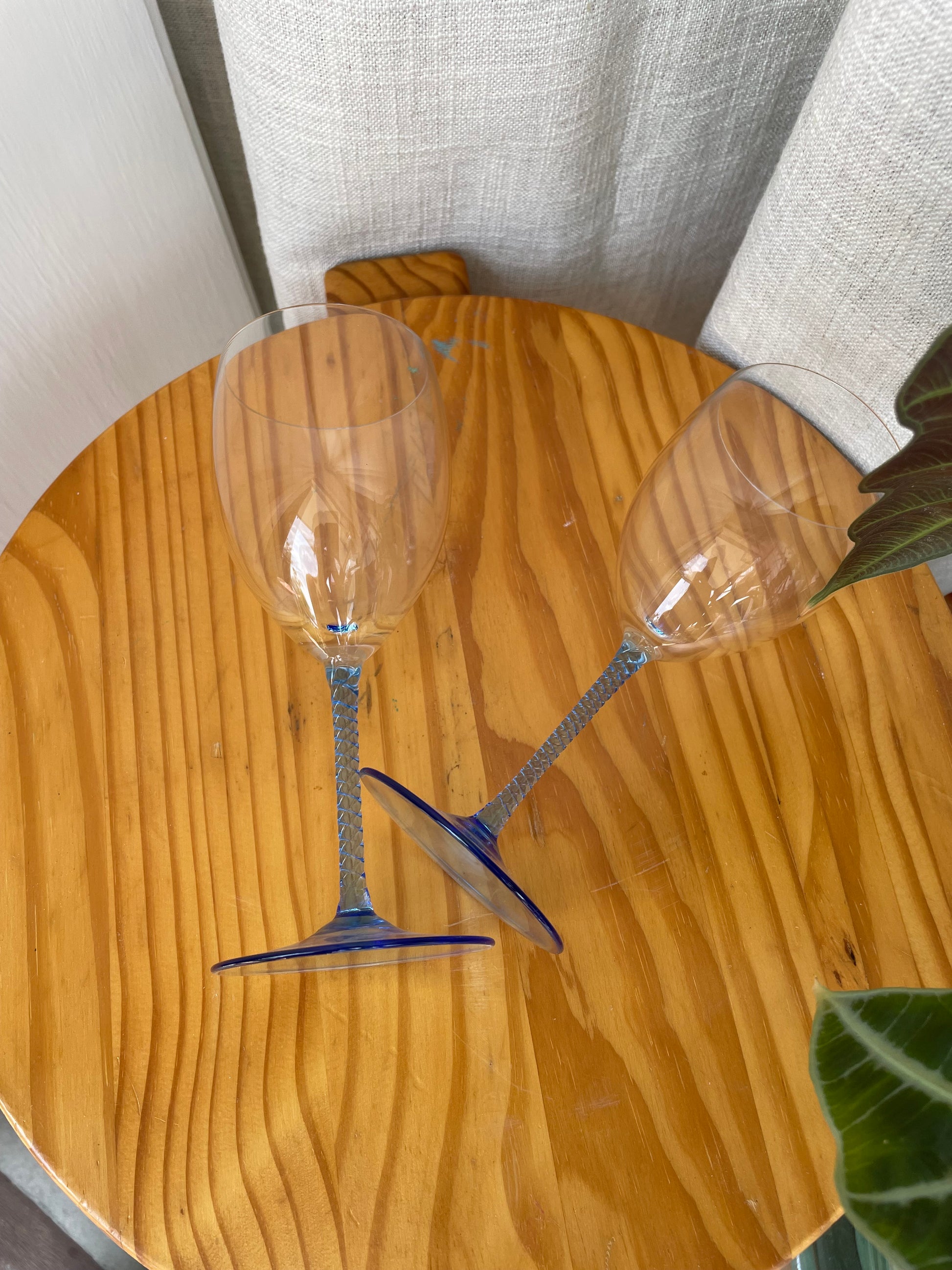 Delikate vinglas fundet i Italien. De er meget lette og kommer med en smuk lyseblå snoet stilk.