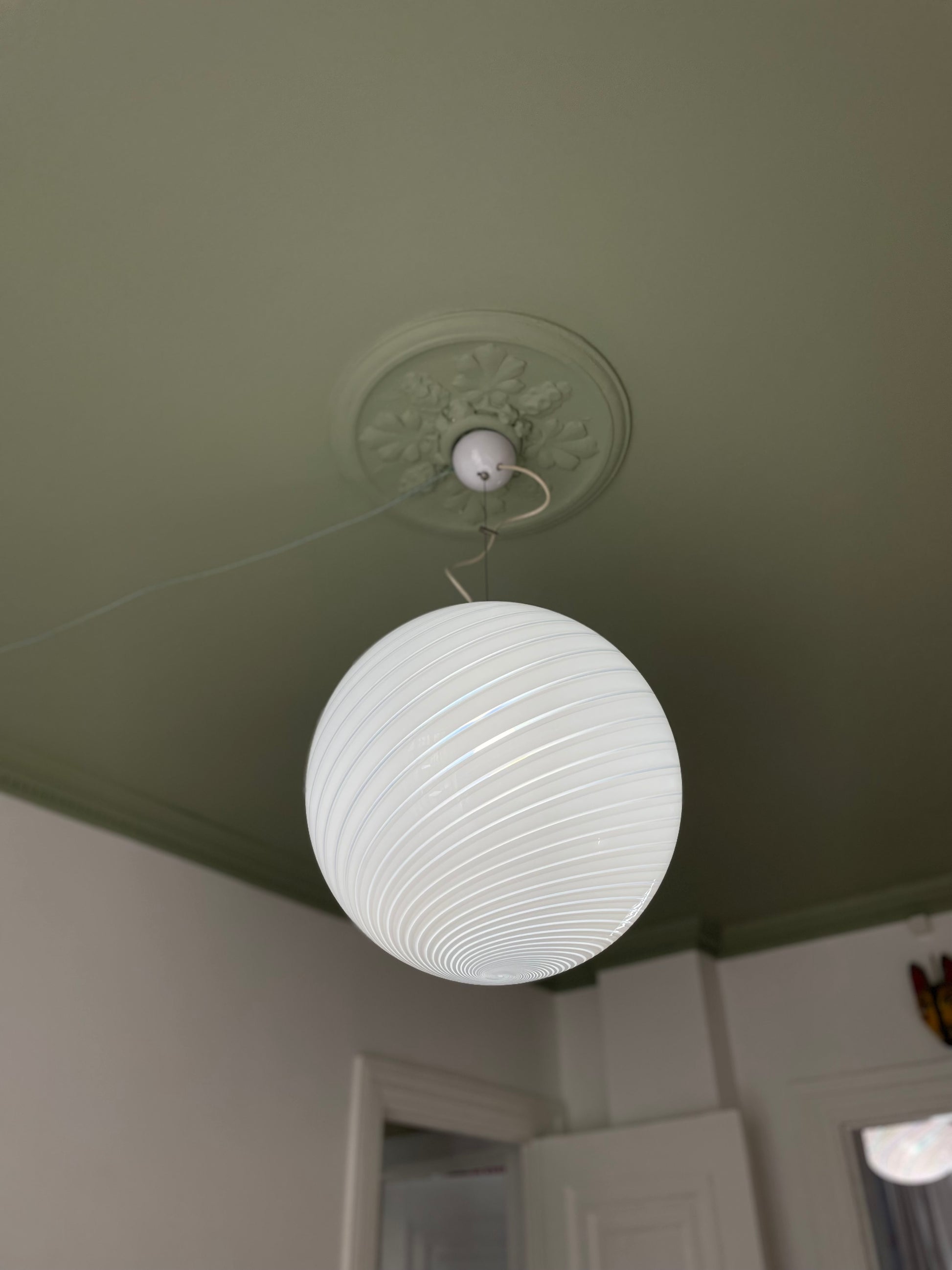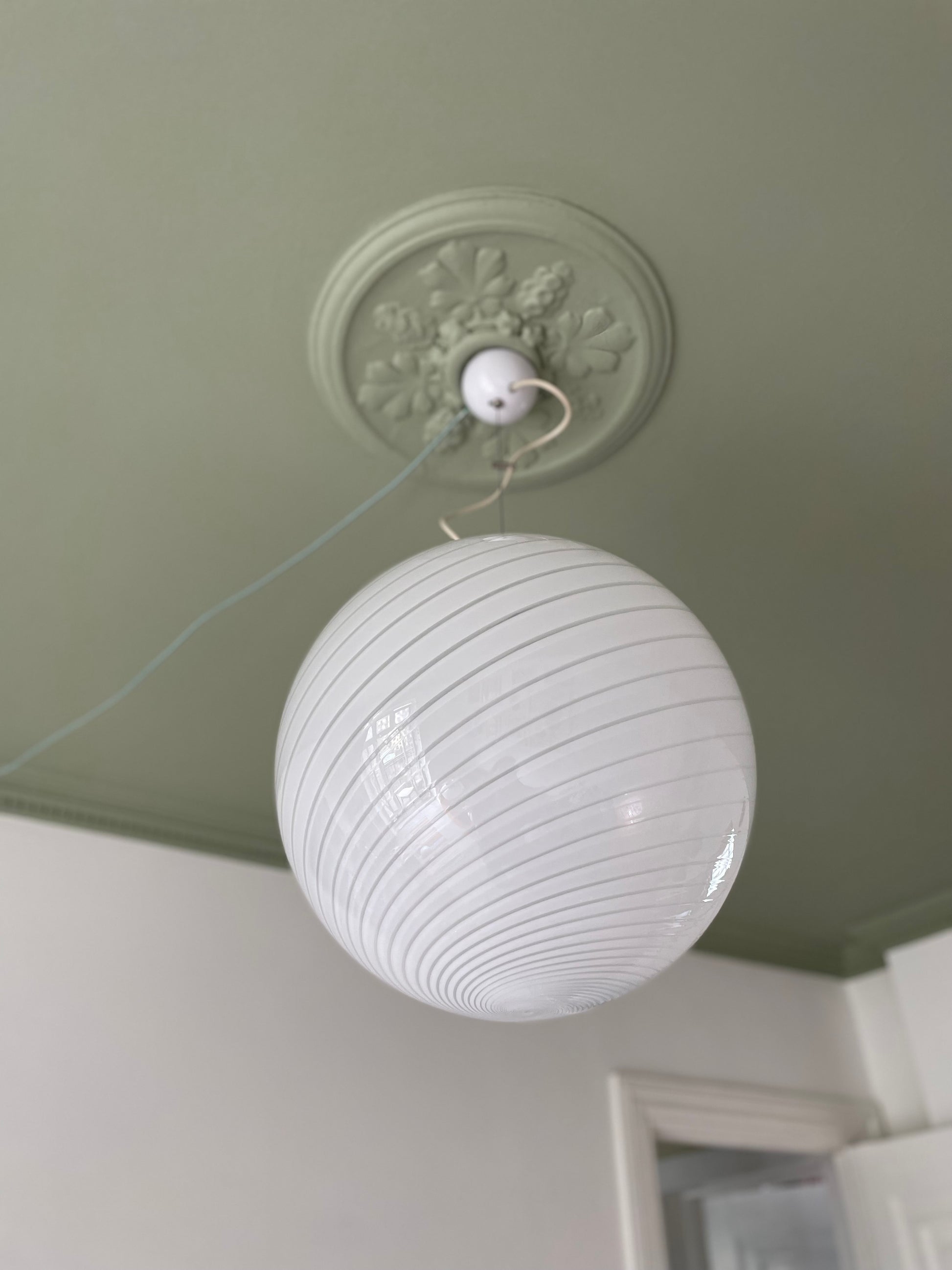 Vintage Murano hvid swirl pendel loftlampe 45cm