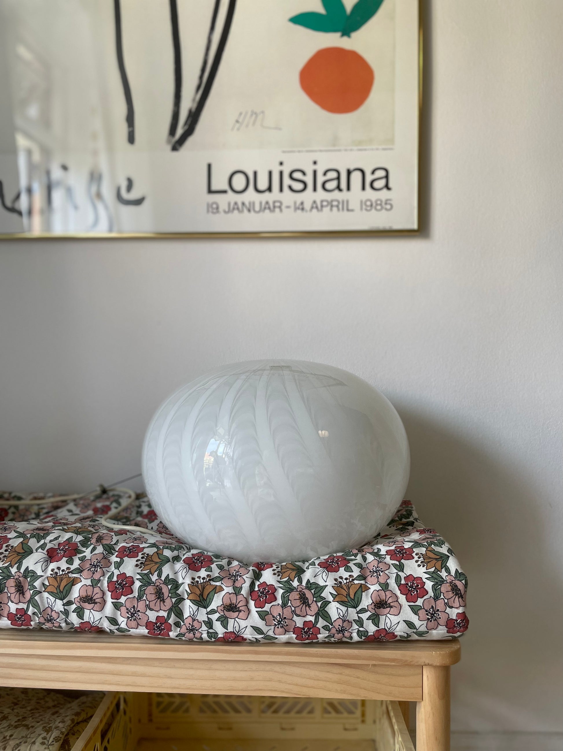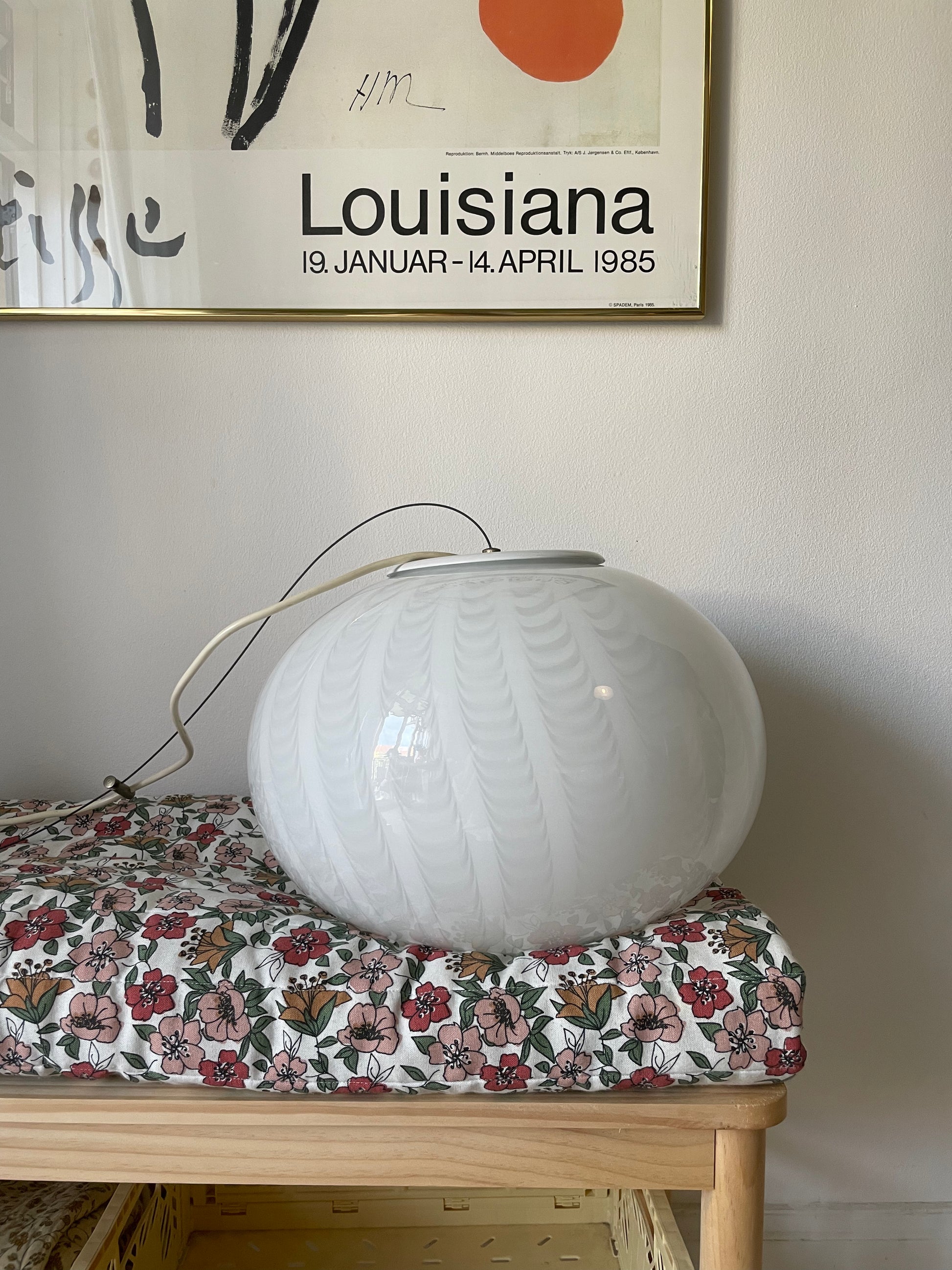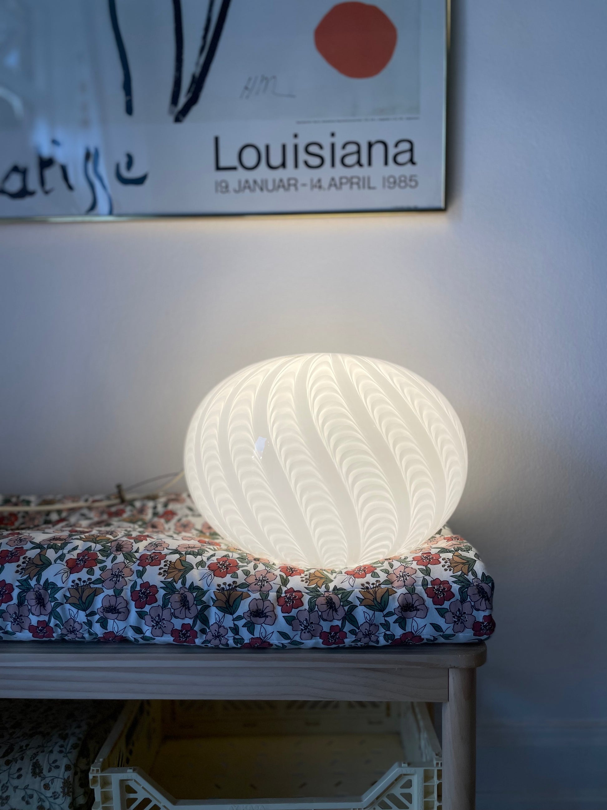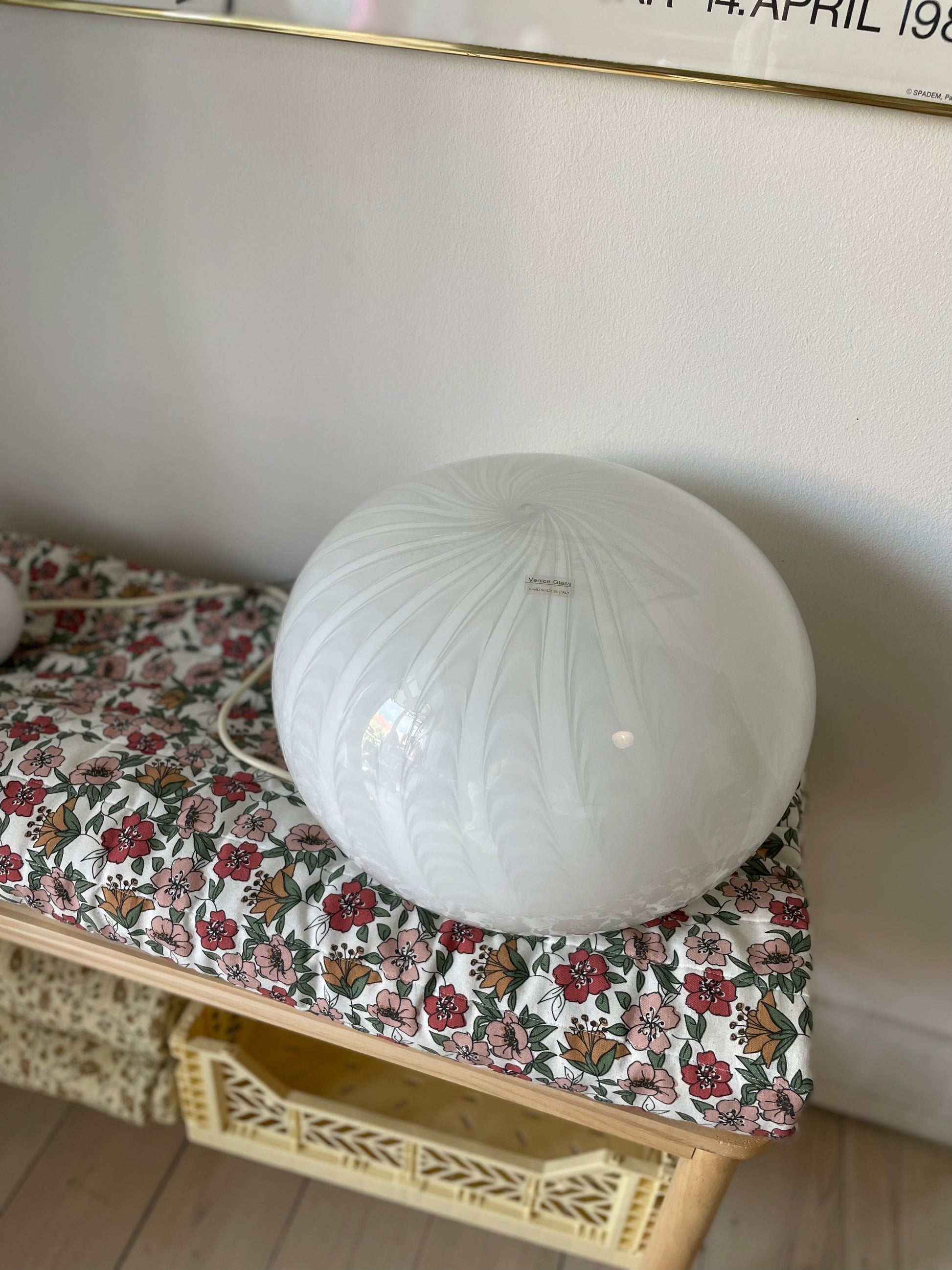 Fantastisk vintage Murano loftlampe med peacock mønster. Lampen er oval og måler 35cm i bredden og 25cm i højden. Den kommer med hvidt greb og bruger 1 styks e27 pære. Desuden kommer pendlen med originalt klistermærke.