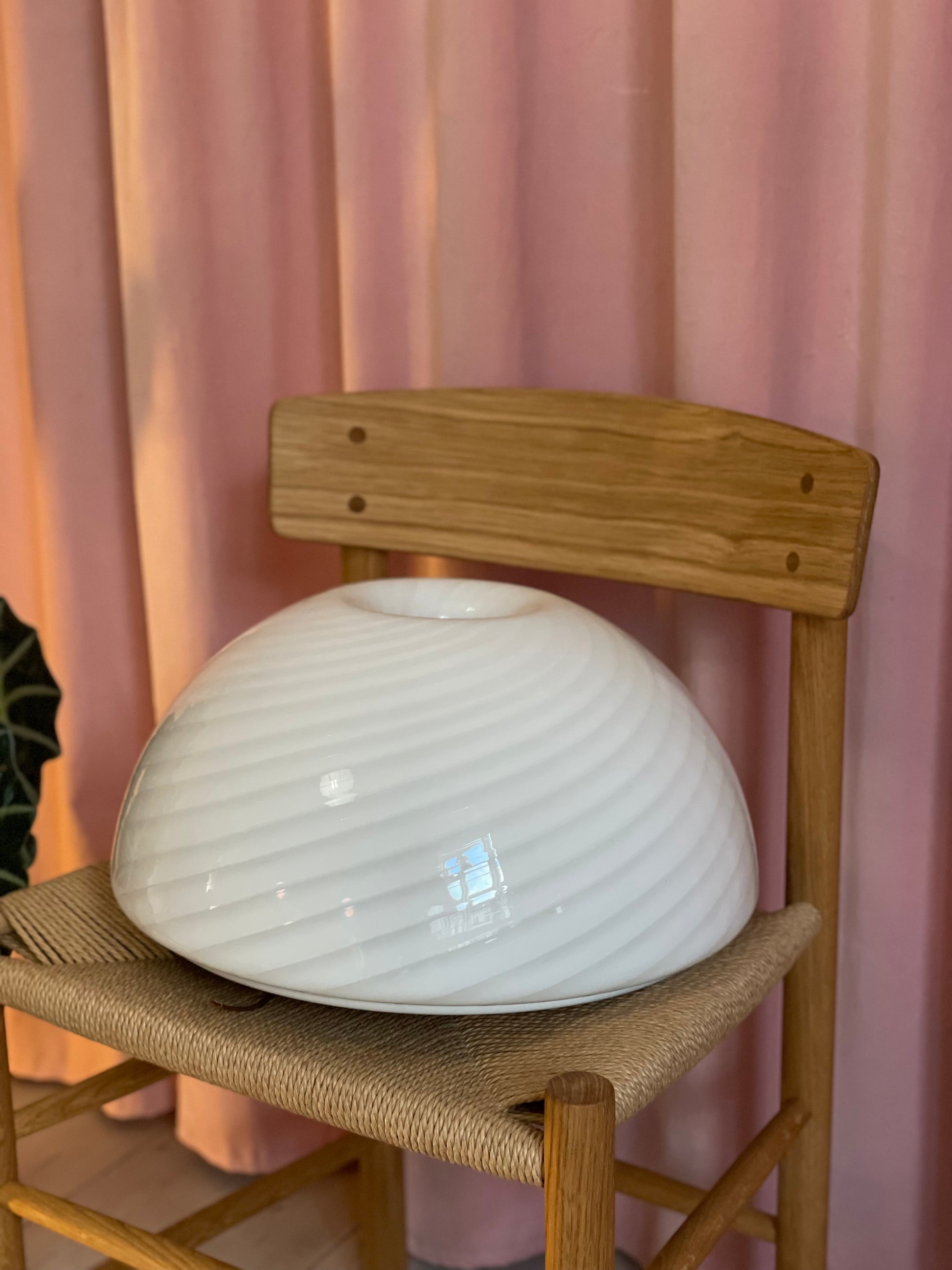Stor og svimlende flot Murano væglampe er netop landet. Dette flotte eksemplar huser ikke 1, ikke 2 men hele 3 E27 fatninger og kan derfor snildt lyse et helt rum op med de rette pærer. Lampen er i super flot stand og kommer med en hvid base.