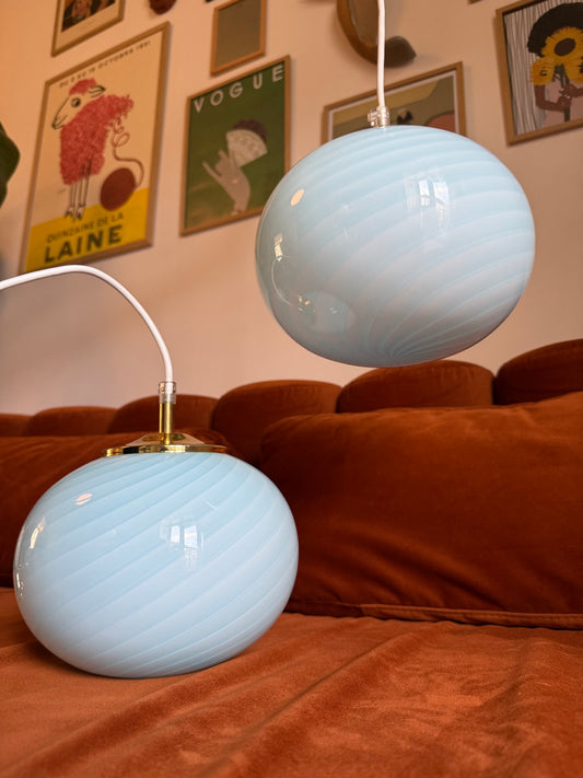 Lyseblå vintage Murano loftlampe