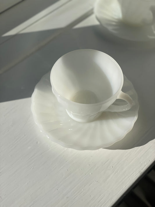 Anchor Hocking tea cups in white opal glass