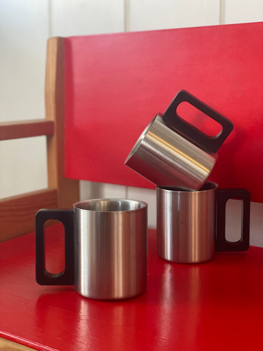 Retro cups in steel with plastic handles