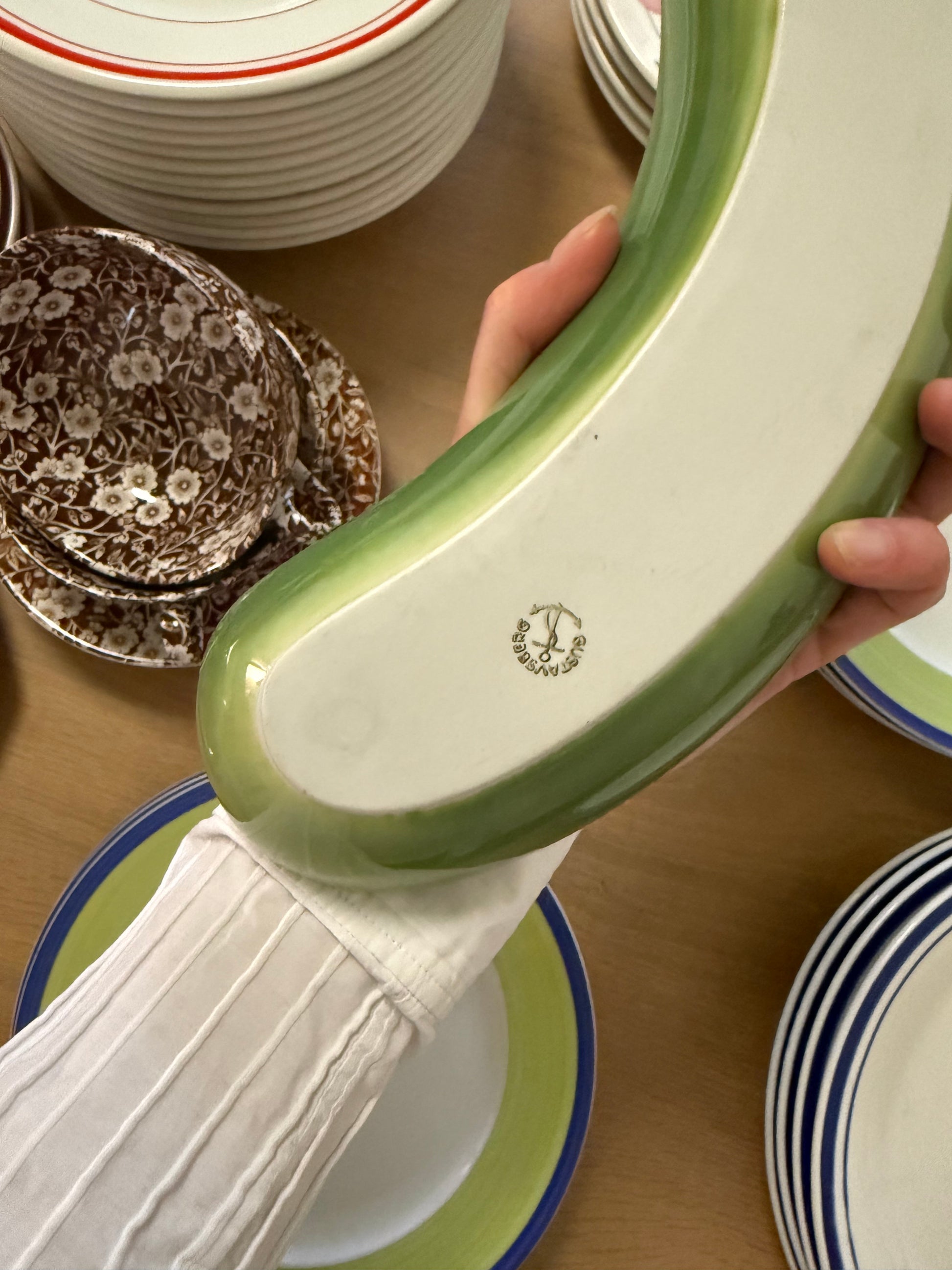 Smukt og yderst velholdt fad formet som agurk af Stig Lindberg for Gustavsberg. Fadet måler 31,5cm i længden.