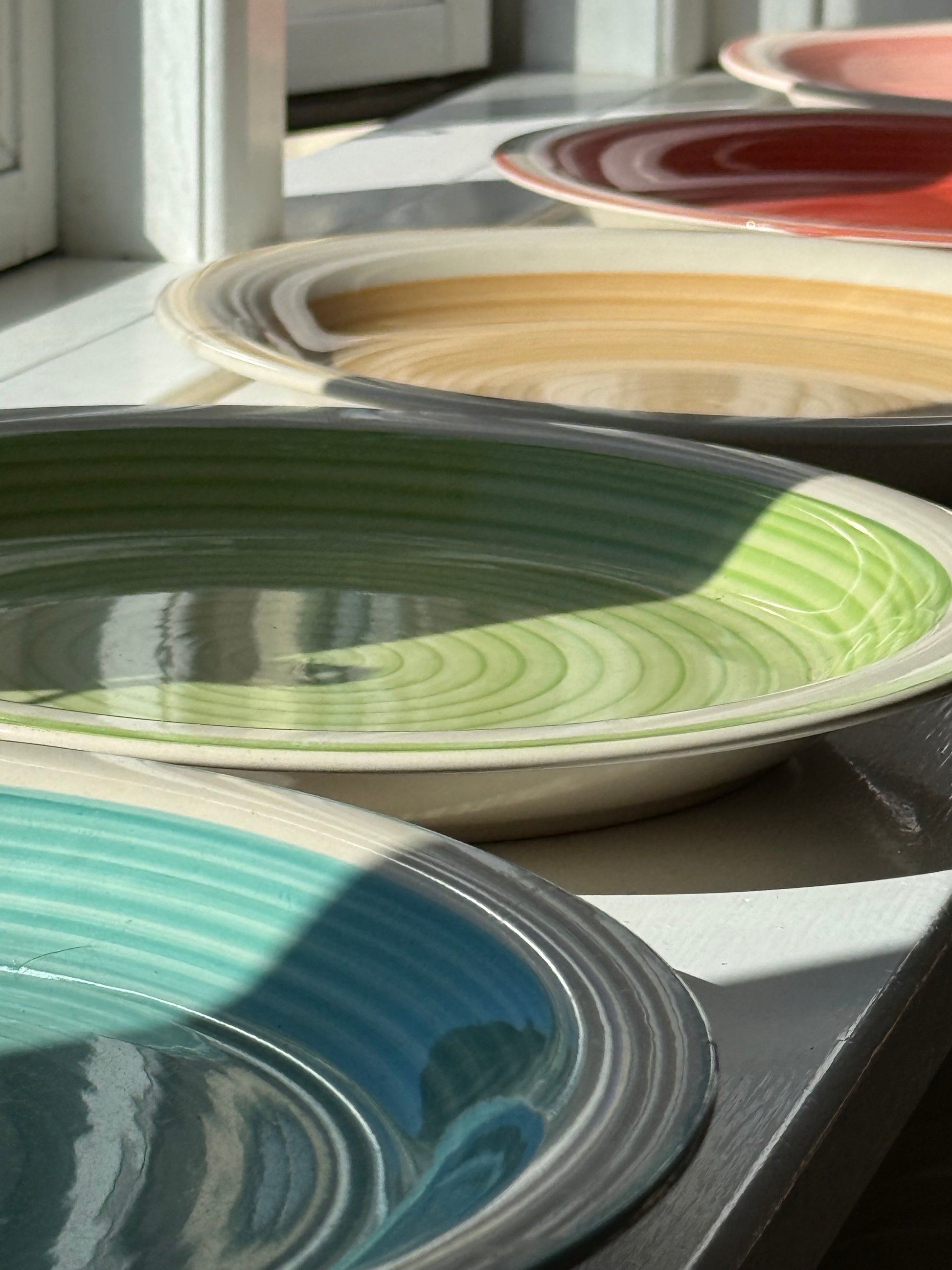 lækre store middagstallerkener på 27cm med smuk tynd swirl. Sælges stykvis. Fin stand med normale brugsspor.