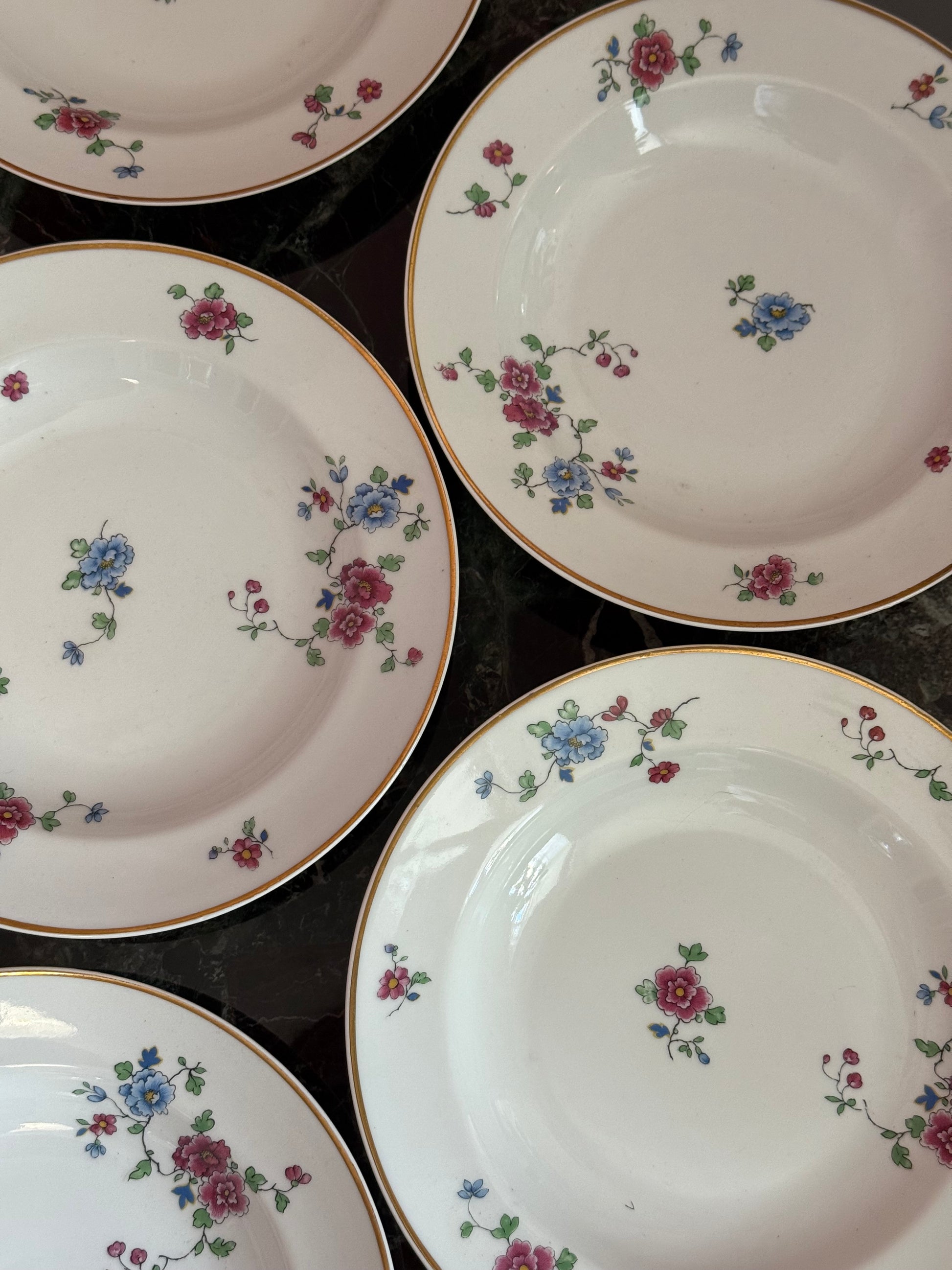 Dybe blomstrede tallerkner med guldkant