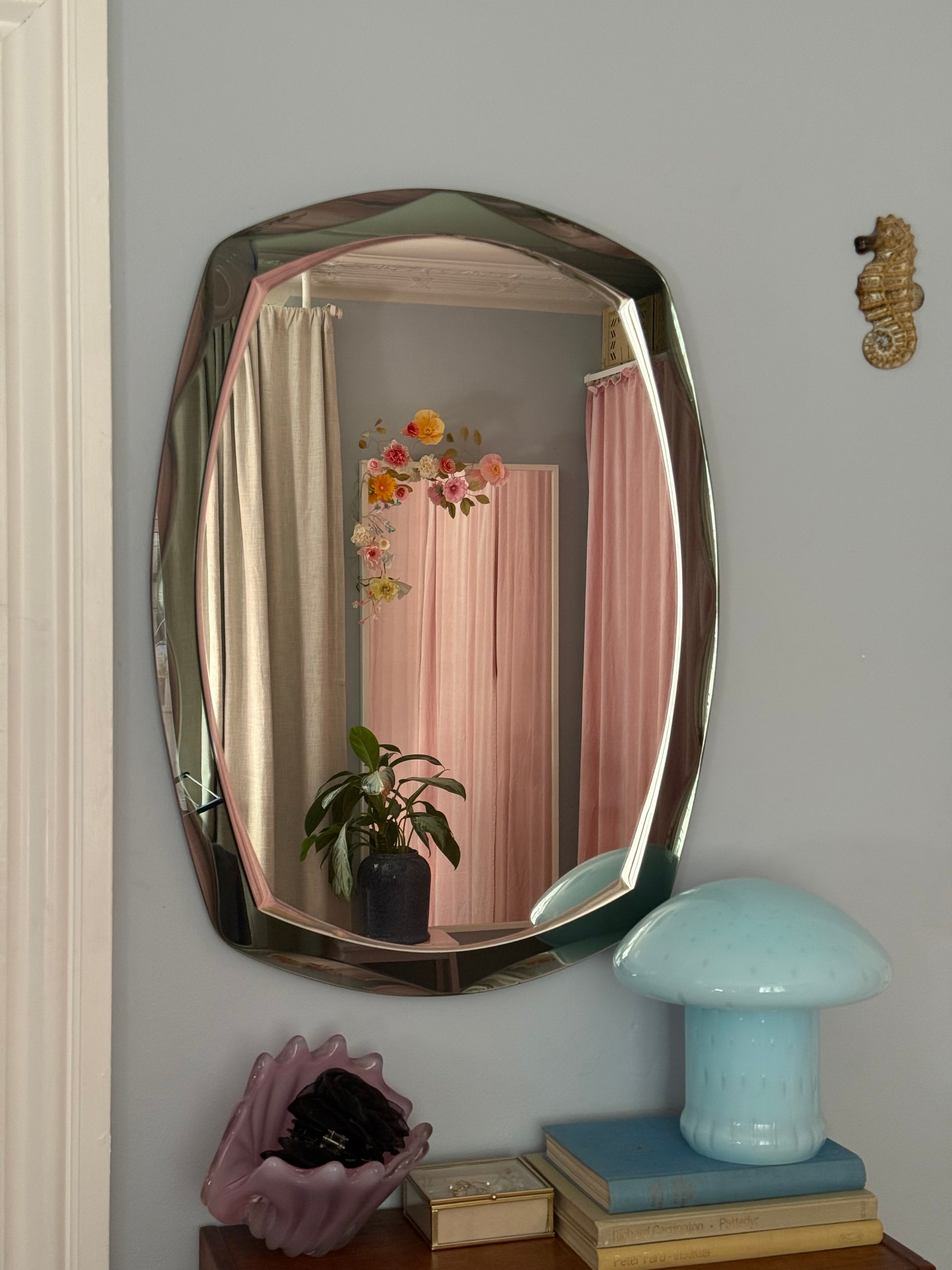 Italiensk vintage spejl med grågrøn kant