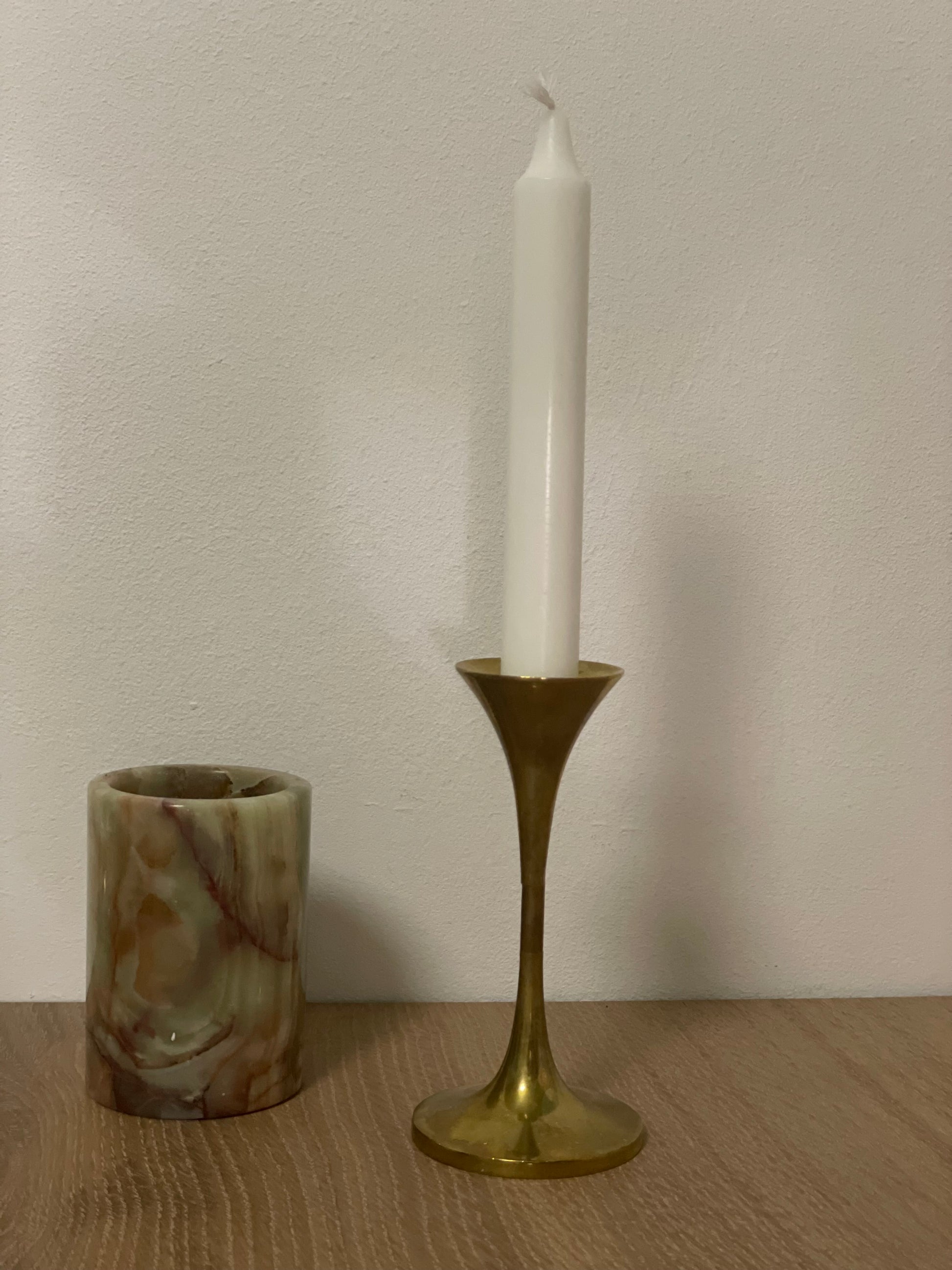 Vores messingstager er renset for stearin og klar til brug, men fremstår derudover med masser af dejlig patina som tegn på et langt liv. Se derfor godt på billederne før du køber eller ræk ud ved spørgsmål. Hvis du er til det polerede look, så kan du desuden snildt selv pudse messingstagen op.