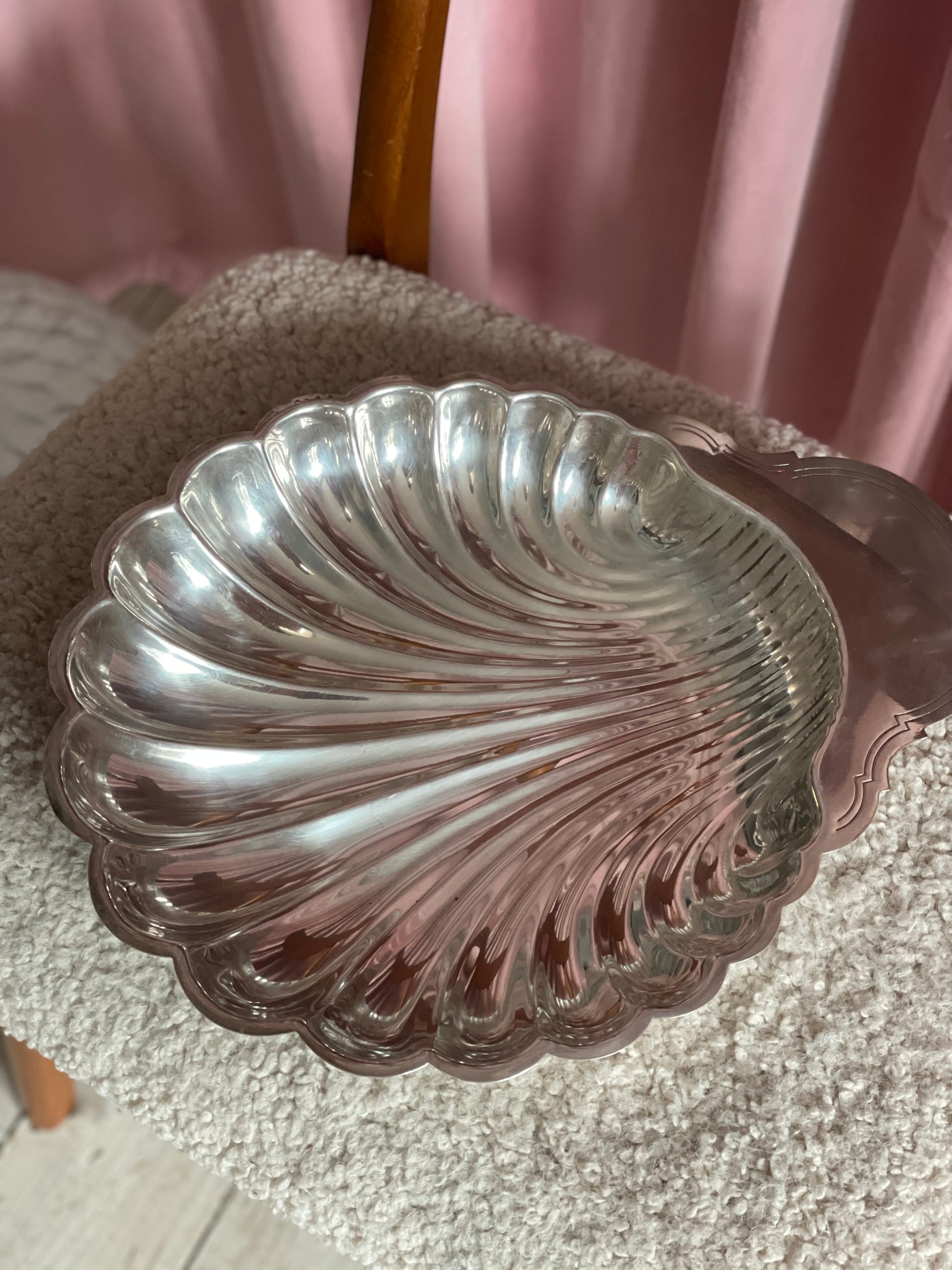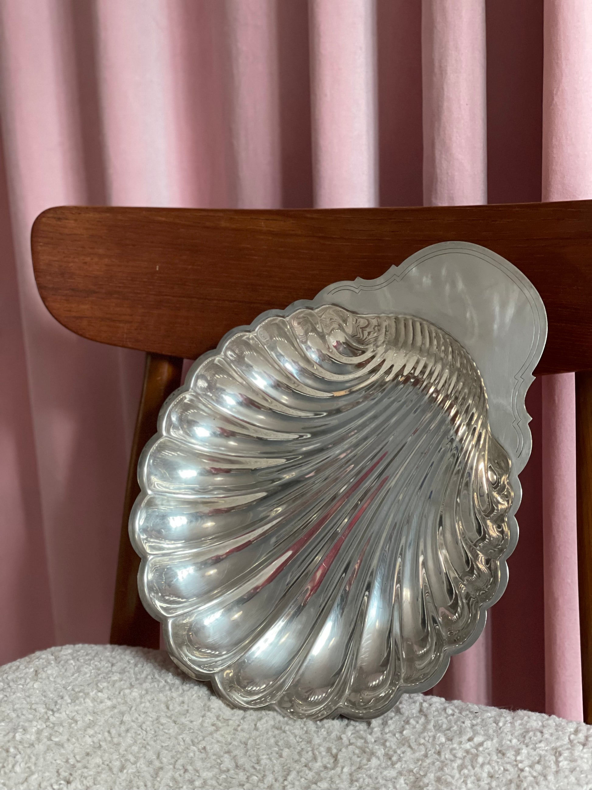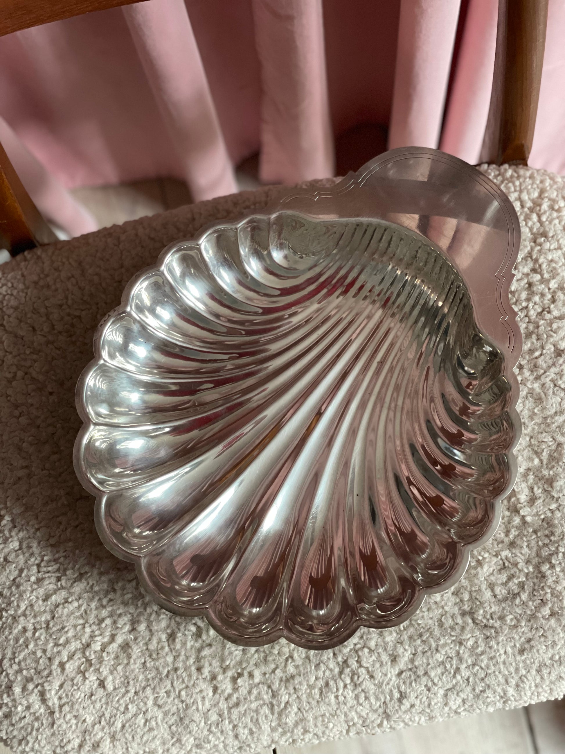 Stort muslingefiskeri fad i stål eller krom fundet i Italien. Fadet har dybde og måler 34,5cm på breddeste led. Brug det til frugt på køkkenbordet eller servering.