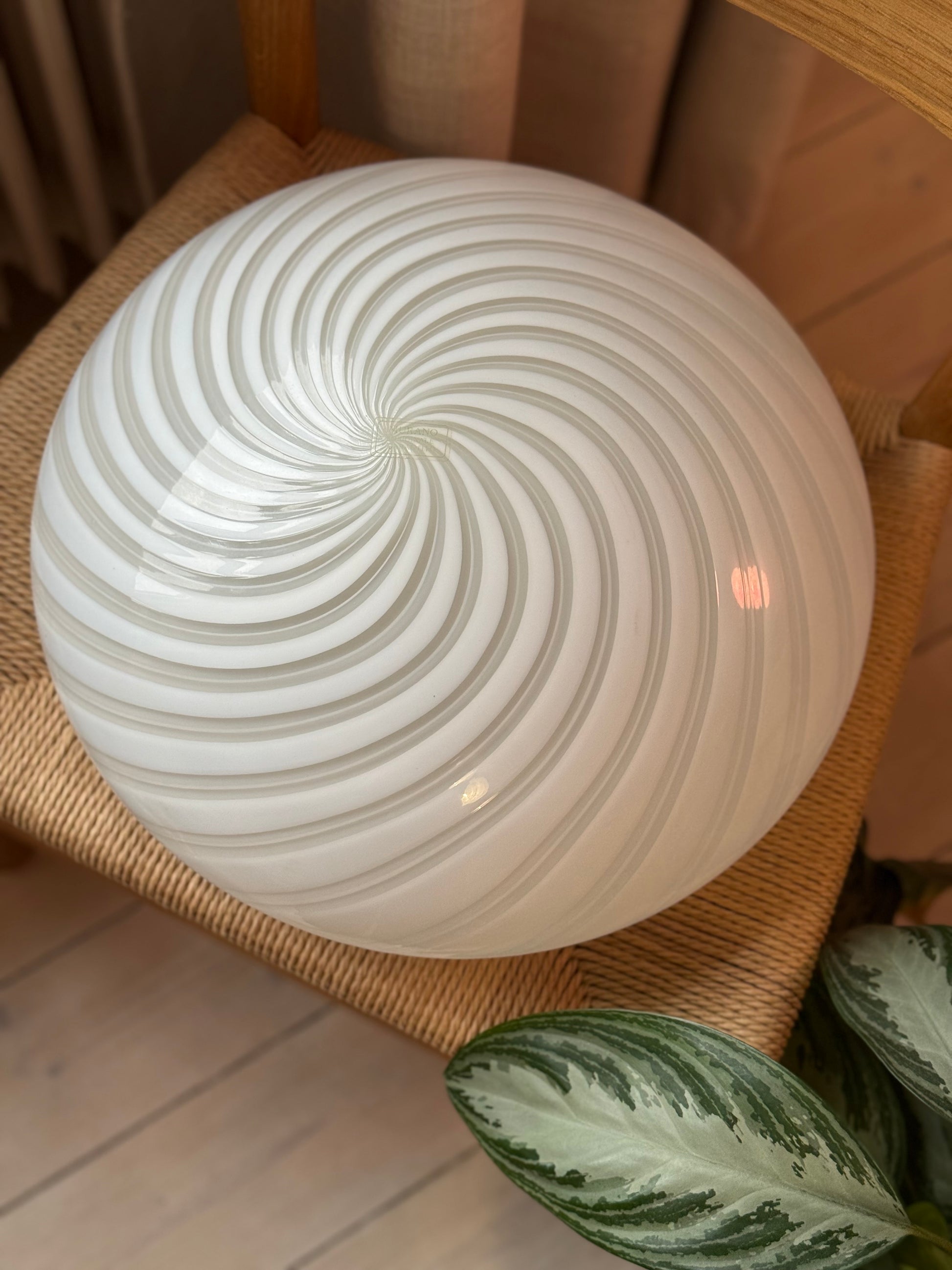 Smuk plafond med kraftig hvid swirl til ophæng på både væg og i loft. Den giver smukt hvidt lys og kommer i en alsidig størrelse på 37cm. Lampen er 16cm dyb. Kommer med hvid base og en e27 fatning.
