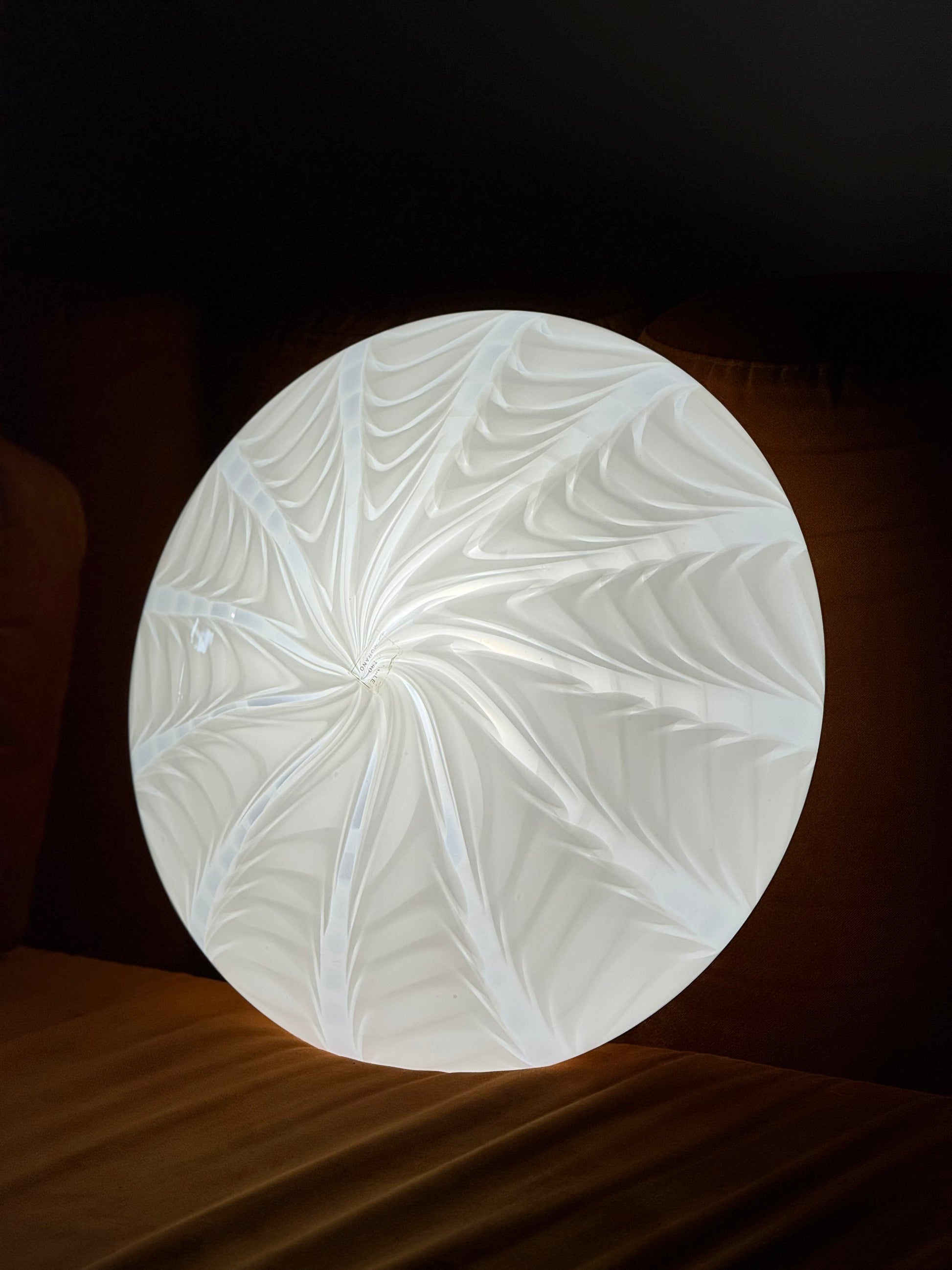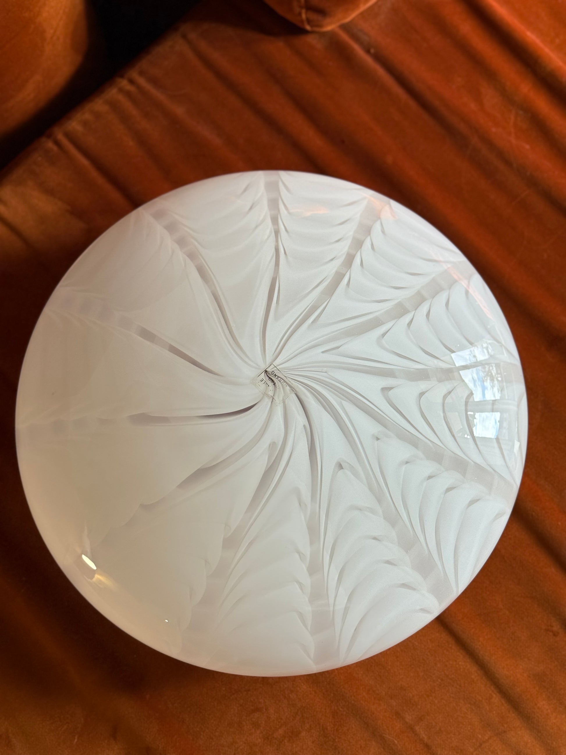 Absurd smuk vintage murano plafond med sjældent edderkop mønster med en bredde på 37 og en højde på 15,5cm. Lampen her kan bruges både som væg og loftlampe og kommer med smart og nem montering. Den bruger 1 stk e27 pære.